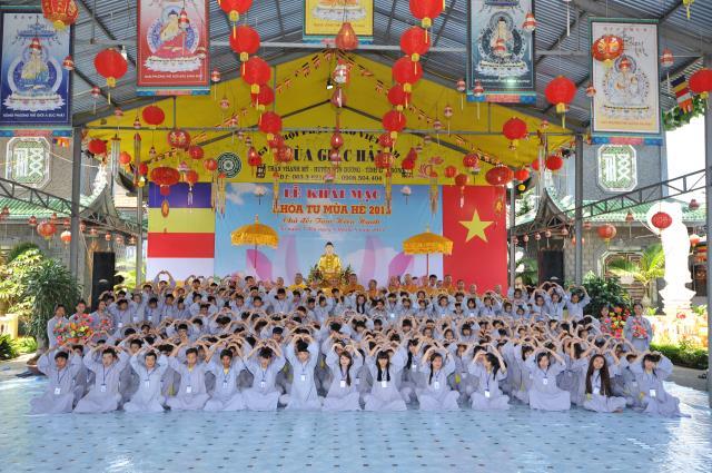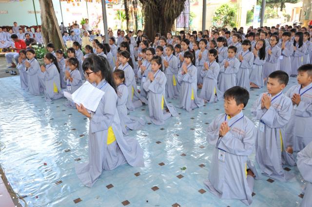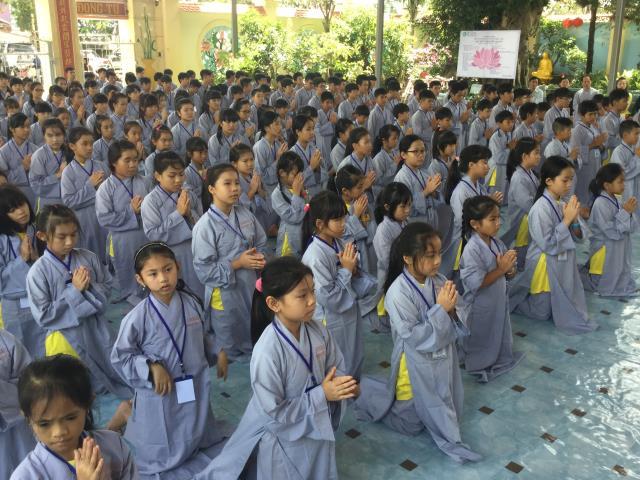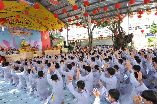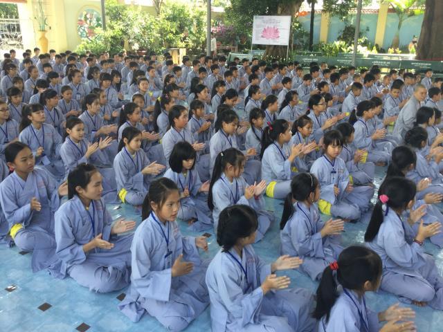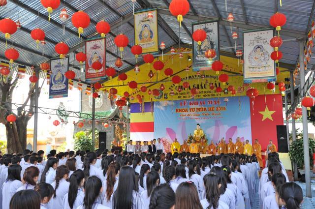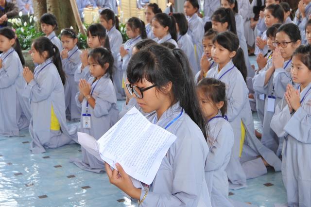 Bạn Đào Thị Thùy Duyên, đại diện cho 300 bạn trẻ tuyên dọc phát nguyện của khóa sinh: “Tất cả chúng con được trở về đây, dưới mái chùa Giác Hải uy nghi và rực rỡ, được cùng sống hòa hợp vui vẻ bên nhau để cùng tu, cùng học. Dưới sự dìu dắt và yêu thương của quý thầy, quý cô, chúng con được hiểu thêm về Phật pháp, hiểu đạo lý làm người. Từ đó, chúng con biết sống hiếu kính cha mẹ, thuận thảo yêu thương anh chị em hơn, chăm học tốt hơn, làm người hữu dụng hơn, chúng con phát nguyện sẽ thành những búp sen thơm ngát, dễ thương của mọi người và sau này sẽ là những công dân tốt, sống có ích cho cộng đồng xã hội”.