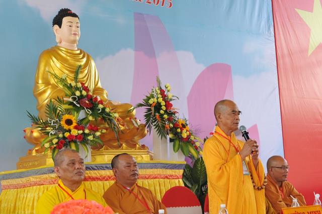 HT. Thích Toàn Đức, Ủy viên HĐTS, trưởng BTS GHPGVN tỉnh Lâm Đồng thay mặt chu tôn đức chứng minh ban huấn từ.