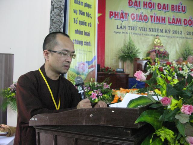Sau lễ niệm Phật cầu gia bị, giới thiệu thành phần Đại biểu tham dự, HT Thích Toàn Đức phó trưởng ban thường trực BTS – trưởng ban nhân sự Đại hội đọc nội qui đại hội . ĐĐ Thích Minh Hải phó thư ký BTS đọc báo cáo tổng kết công tác phật sự nhiệm kỳ 2007 – 2012 , Đại hội lắng nghe TT. Thích Viên Như phó BTS đọc phương hướng, chương trình hoạt động nhiệm vụ nhiệm kỳ 2012 – 2017 .