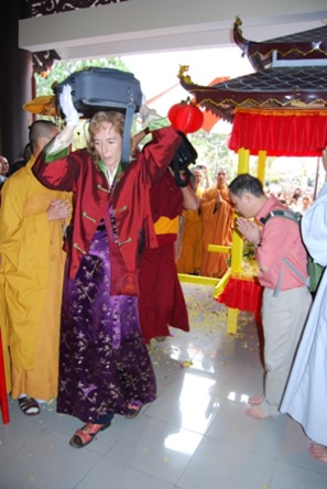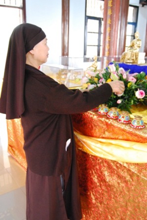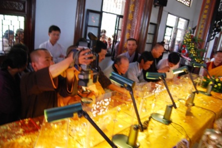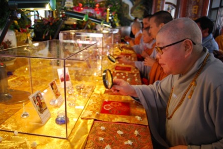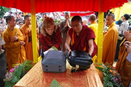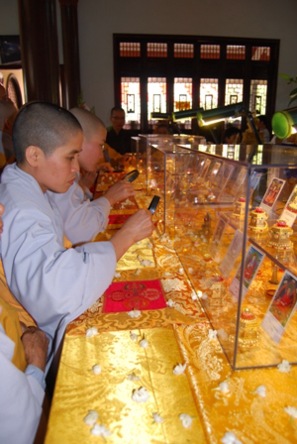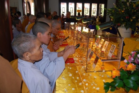Xá lợi Phật được đặt nơi Tổ đình Linh Quang, tại đây phái đoàn thực hiện nghi thức niêm hương bạch Phật rồi long trọng rước xá lợi Phật lên xe hoa rồi cung thỉnh sang chùa Phước Huệ – nơi được chọn để trưng bày trong các ngày 6,7,8,9/03/2009.