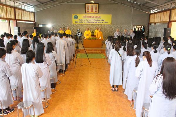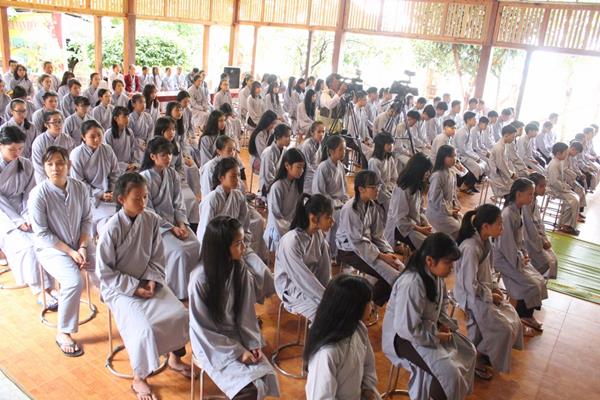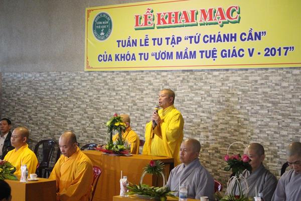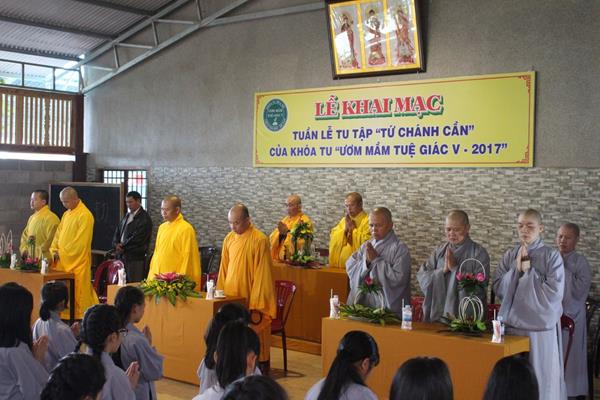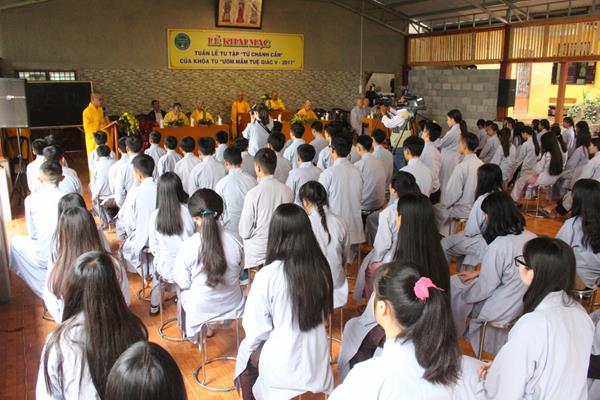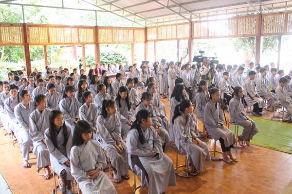 Trong không khí trang nghiêm của buổi lễ và sự hiện diện của 150 em tu sinh tham dự khóa tu, TT. Thích Viên Thanh đã tán thán công đức của ĐĐ. Thích Vạn Trí cùng toàn thể Tăng chúng vì thương tưởng đến hàng hậu học, những mầm non tươi trẻ mà tổ chức khóa tu . Thượng tọa mong muốn, không chỉ trong khóa tu 7 ngày mà khi các em hòa nhập lại cùng với gia đình thì hạt giống bồ đề vẫn luôn nở trong lòng các em. Tâm luôn nghĩ về điều lành, việc tốt, cư xử đúng mực với những mối quan hệ trong xã hội để cuộc sống mới bớt đi khổ đau thay vào đó là niềm hạnh phúc, sự thăng hoa trong cuộc sống.