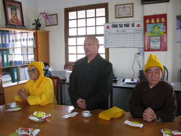 Tiếp đón đoàn có HT Thích Tánh Hải – thành viên Hội đồng Chứng minh GHPGVN , TT Thích Viên Thanh , TT Thích Thanh Tân, TT Thích Viên Như – Phó Ban Trị Sự, ĐĐ Thích Minh Nhật – Chánh văn phòng, ĐĐ Thích Linh Toàn – Phó thư ký Ban Trị Sự .