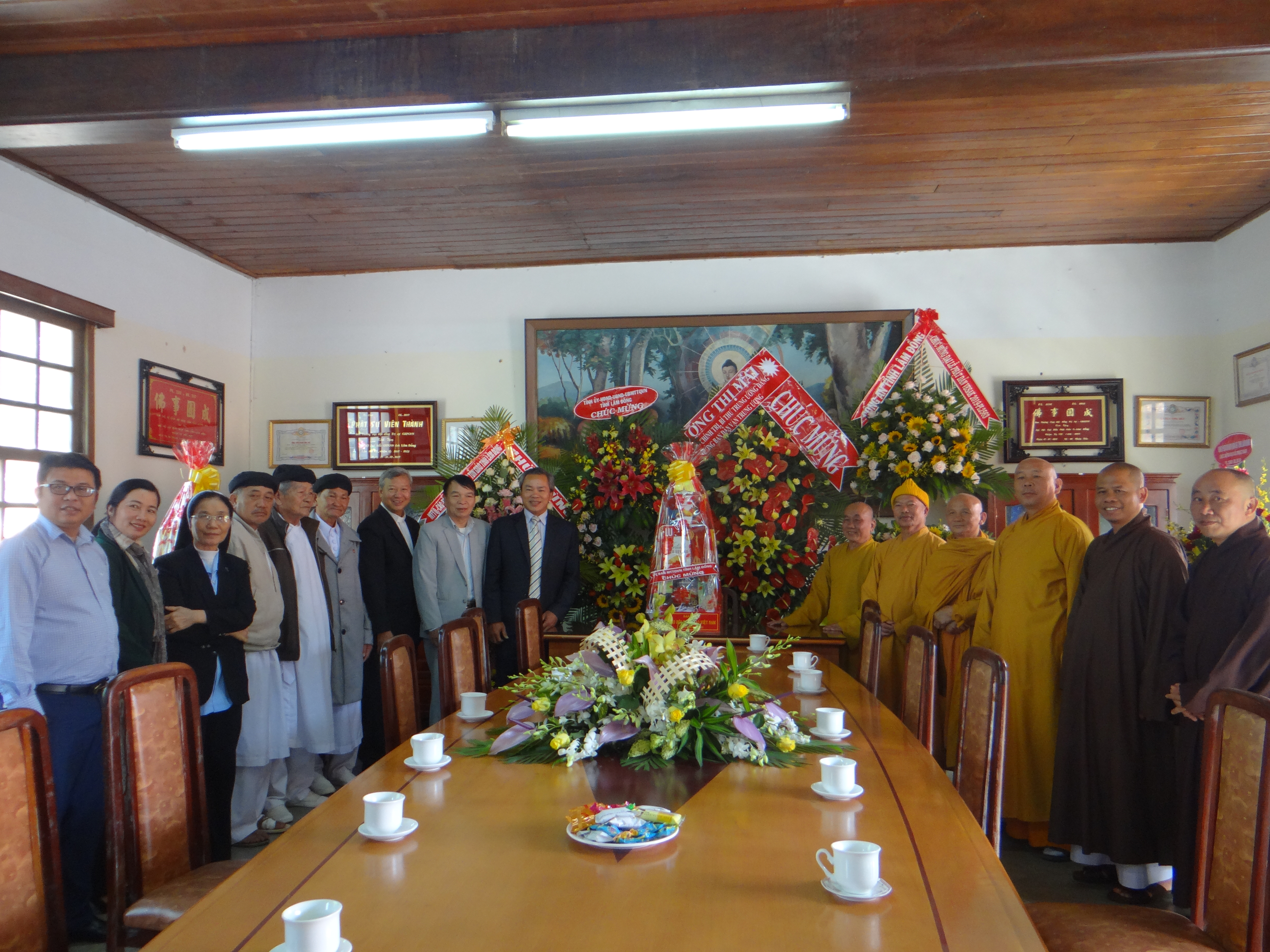 Nhân Đại lễ Phật đản năm 2019 – Phật lịch 2563, sáng ngày 17/5/2019,  phái đoàn, Tỉnh ủy, HĐND, UBND, UBMTTQVN tỉnh Lâm Đồng đã đến văn phòng BTS GHPGVN tỉnh ( chùa Linh Sơn ĐàLạt) thăm và tặng hoa chúc mừng thường trực BTS, chư tôn đức tăng ni và bà con Phật tử trên địa bàn tỉnh.