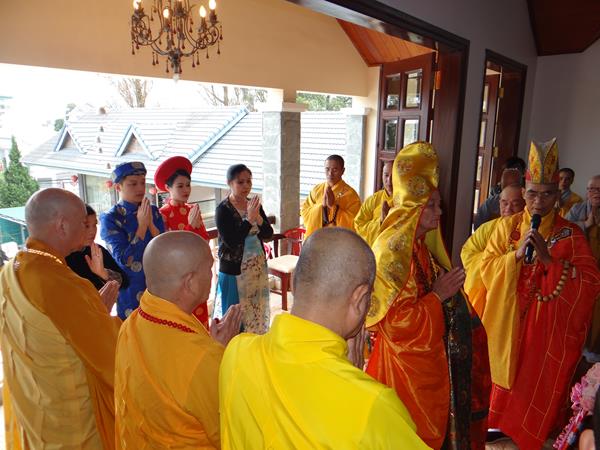 Sáng hôm nay, ngày 20/12/2015 ( nhằm ngày 10/11/ Ất Mùi) , tại tư gia ( số 5 Lữ Gia, phường 9 Tp Đà Lạt), HT. Thích Toàn Đức, UVHĐTSTW GHPGVN – Quyền trưởng Ban Trị Sự GHPGVN tỉnh Lâm Đồng, HT. Thích Chánh Kế, chứng minh BTSPG LĐ cùng chư tôn thiền đức tăng, ni đã quang lâm chứng minh lễ hằng thuận cho đôi Tân lang Lê Khánh pháp danh Quảng Lượng và Tân nương Trần Thủy Tiên pháp danh Chơn Hằng Tiến cùng tham dự ngày vui trọng đại của đôi bạn trẻ còn có quan viên hai họ, bạn bè thân hửu gần xa .