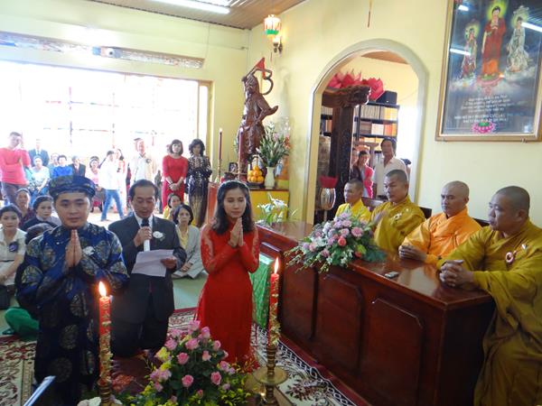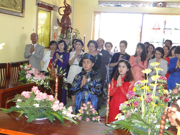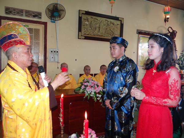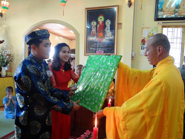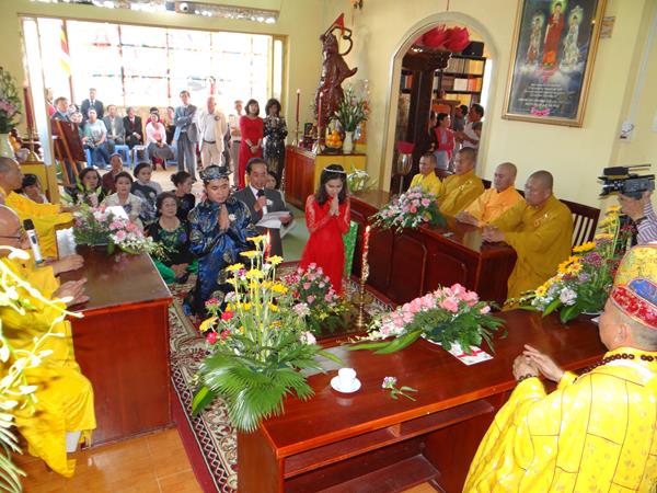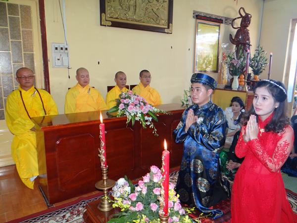 Xuất phát từ tý nghĩa sâu sa này, sáng ngày 02/12/2015 ( nhằm ngày 21/10/Ất Mùi), lễ Hằng Thuận của đôi tân lang Phật tử : Trần Trọng Trung – PD : Nguyên Đức và Tân nương Đinh ý Đan _ PD : Tâm Ngộ, được trang nghiêm, long trọng hoan hỷ tổ chức tại chùa Thiên Phước , Phường 7 Tp Đà Lạt, dưới sự quang lâm chứng minh, tham dự của Thượng tọa Thích Thanh Tân, phó BTS kiêm phó thường trực Ban Tăng Sự GHPGVN tỉnh Lâm Đồng -Viện chủ Tổ đình Sắc tứ Linh Quang, ĐĐ. Thích Minh Nhật, phó thư ký BTS GHPGVN tỉnh Lâm Đồng – Trú trì chùa Thiên Phước, ĐĐ. Thích Minh Tâm, Trưởng Ban hướng dẫn nam nữ Phật tử BTSPG tỉnh Lâm Đồng, ĐĐ. Thích Minh Quảng, phó BTS GHPGVN huyện Lâm Hà, trú trì chùa Bửu Phước, ĐĐ. Thích Thái Minh Giáo thọ Trường TCPHLĐ, Trú trì chùa Bửu Thọ huyện Lâm Hà, ĐĐ. Thích Nguyên Thể chùa Linh Sơn cùng chư tôn đức tăng và quan viên hai họ .