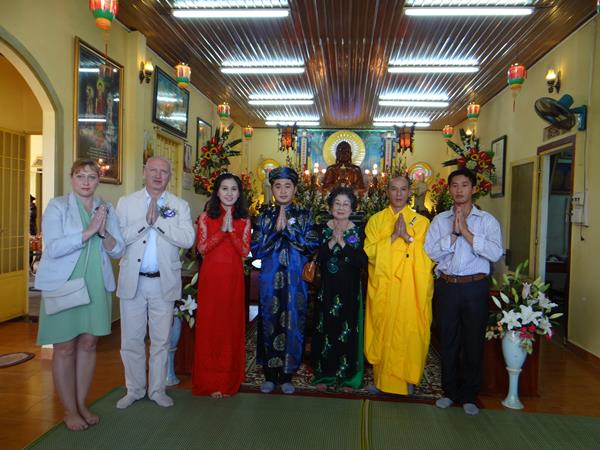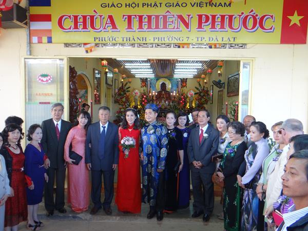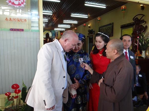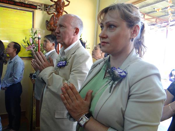 Trong đạt dào cảm xúc, vợ chồng giáo sư, bác sĩ Petrov Igor YeBuch ( chuyên khoa răng hàm mặt – người Nga ), vui vẻ cho biết: Đây lần đầu tiên chúng tôi được mời tham dự một lễ cưới theo nghi thức Phật giáo tại Việt Nam, thật là tuyệt vời, các bạn đã kết hợp thật hài hòa vô cùng ý nghĩa giữa đạo và đời, từ đó các gia đình sẽ luôn hướng đến một tương lai tốt đẹp, hạnh phúc và Việt Nam sẽ ngày càng phát triển …