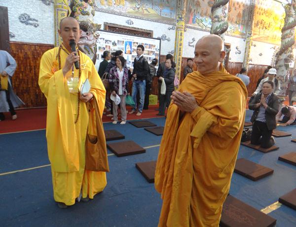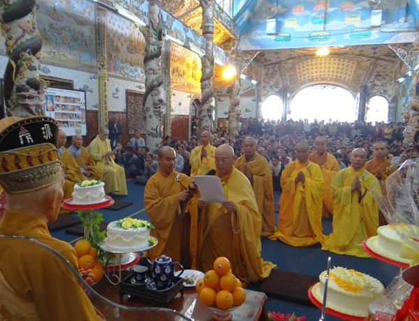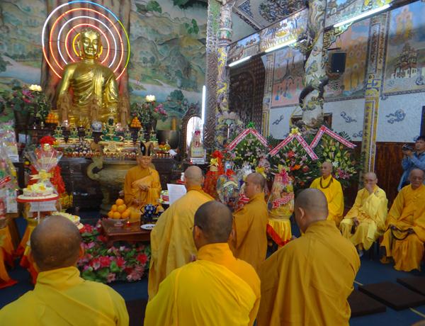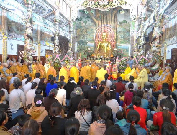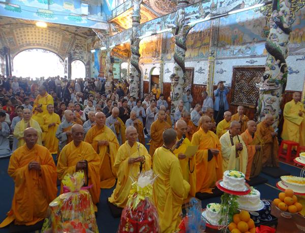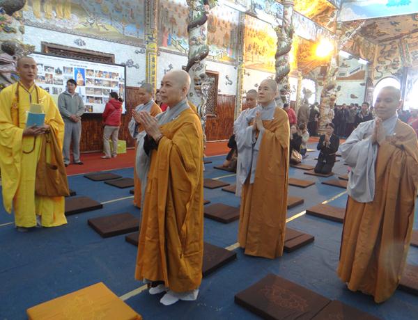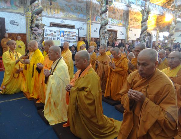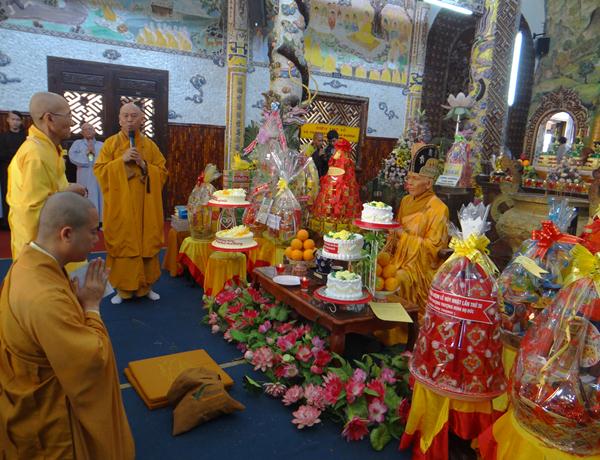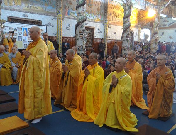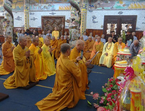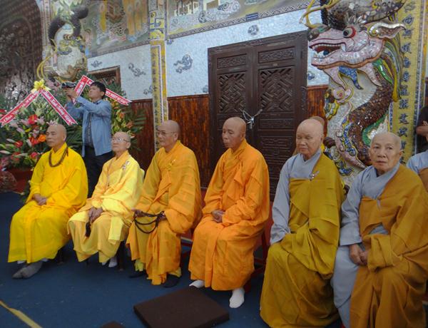 Quang lâm chứng minh và tham dự lễ có chư tôn đức tăng, ni Ban Trị Sự Phật giáo và hàng ngàn phật tử đến từ các đạo tràng trên địa bàn các huyện thị thành trong toàn tỉnh và các tỉnh bạn .Tại Đại hùng Bảo điện, sau lễ niêm hương bạch Phật, TT. Thích Tâm Vị, đại diện cho môn đồ tứ chúng tuyên đọc tiểu sử của cố Đại lão hòa thượng .