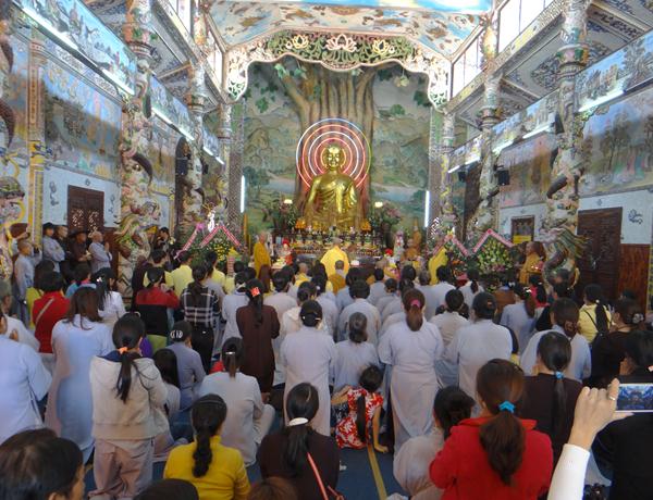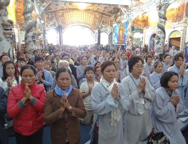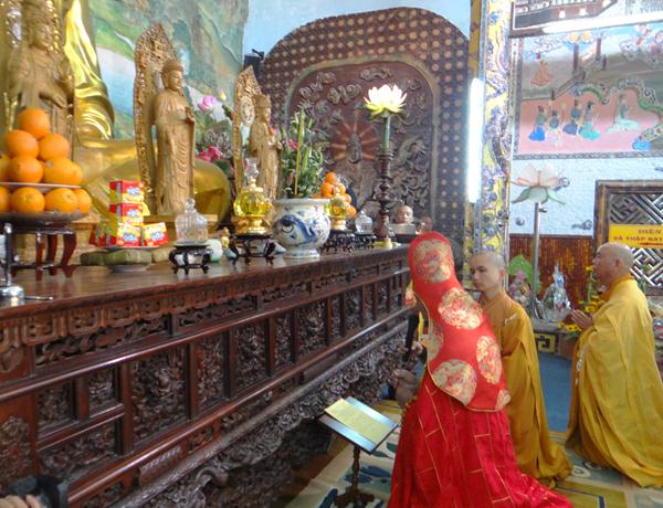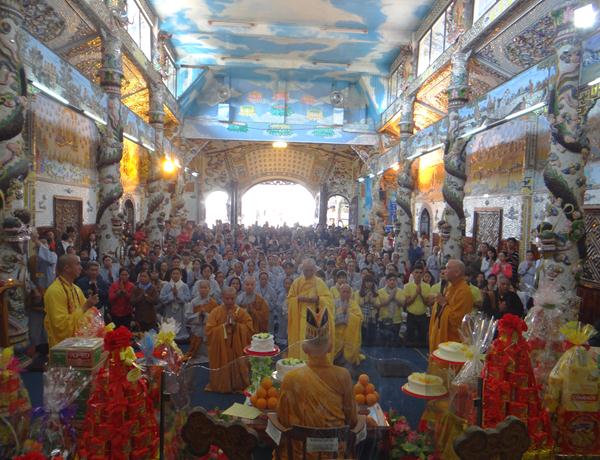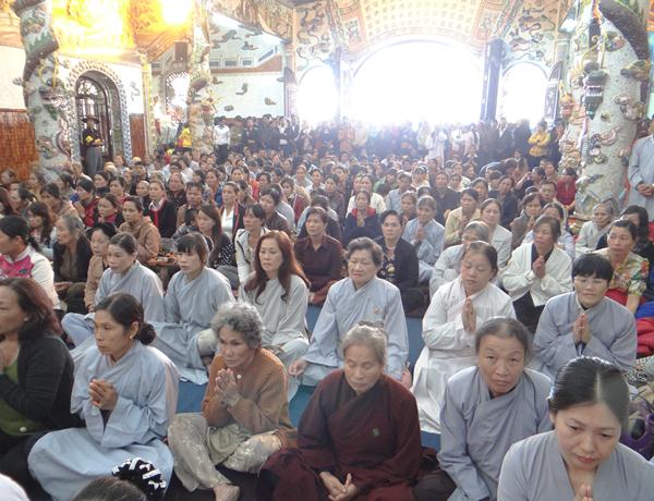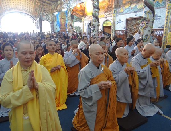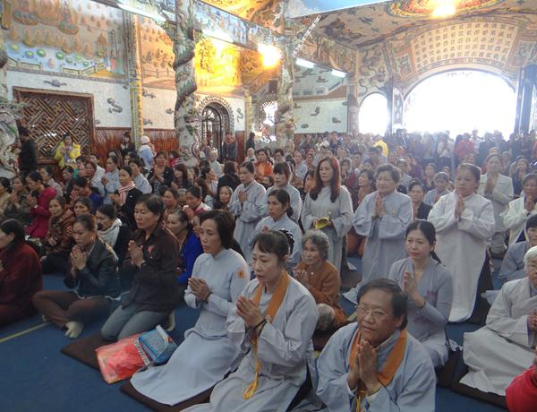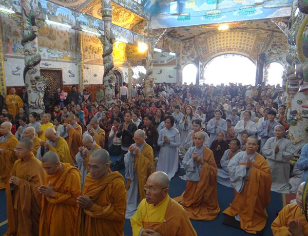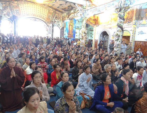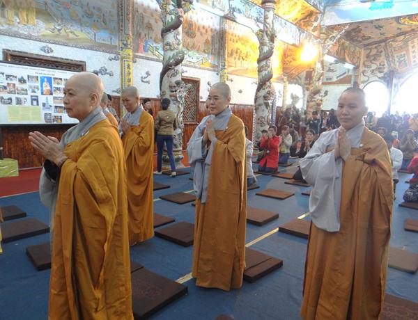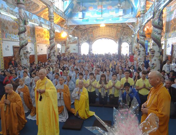 Quang lâm chứng minh và tham dự lễ có chư tôn đức tăng, ni Ban Trị Sự Phật giáo và hàng ngàn phật tử đến từ các đạo tràng trên địa bàn các huyện thị thành trong toàn tỉnh và các tỉnh bạn .Tại Đại hùng Bảo điện, sau lễ niêm hương bạch Phật, TT. Thích Tâm Vị, đại diện cho môn đồ tứ chúng tuyên đọc tiểu sử của cố Đại lão hòa thượng .