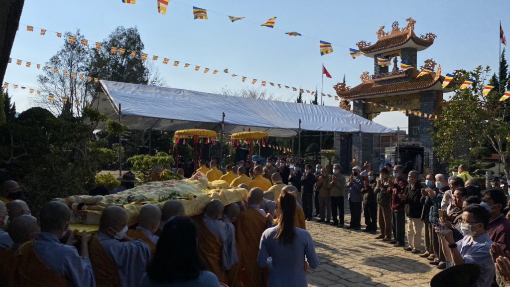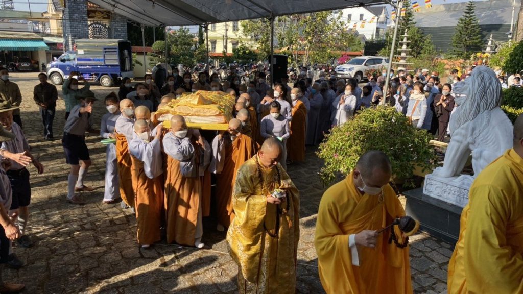 Sáng hôm nay, ngày mùng 9 tháng 03 năm Nhâm Dần (nhằm ngày 9/4/2022),Ban Trị sự GHPGVN Tp. Đà Lạt và môn đồ pháp quyến trang nghiêm cung thỉnh nhục thân tân viên tịch, cố Ni trưởng Thích Nữ Huệ Trang, trú trì chùa Thiền Lâm TP ĐàLạt , nhập kim quan.