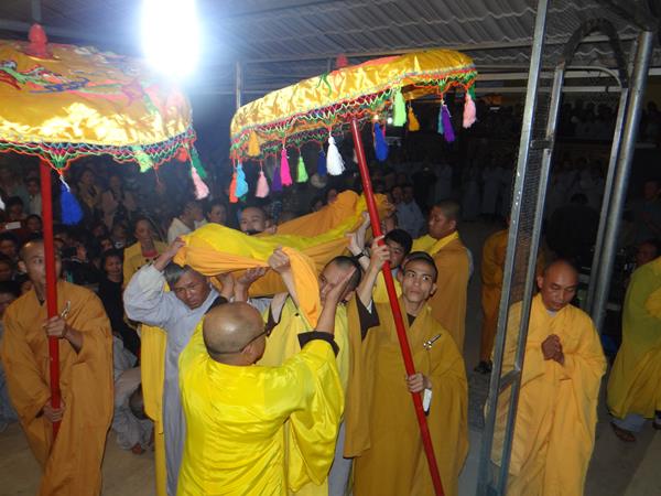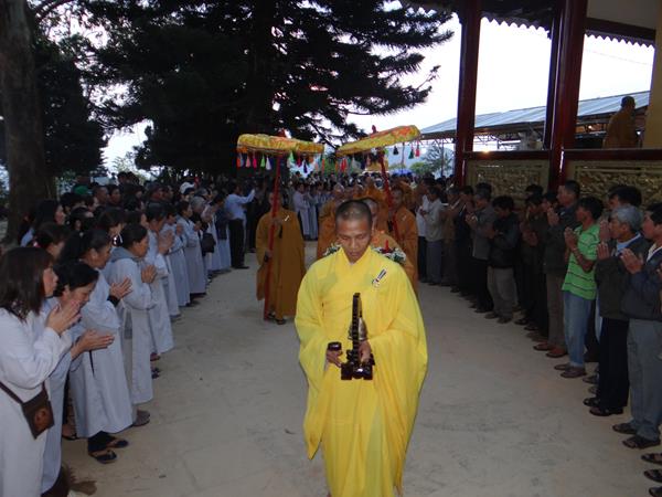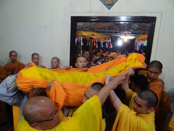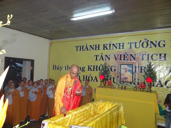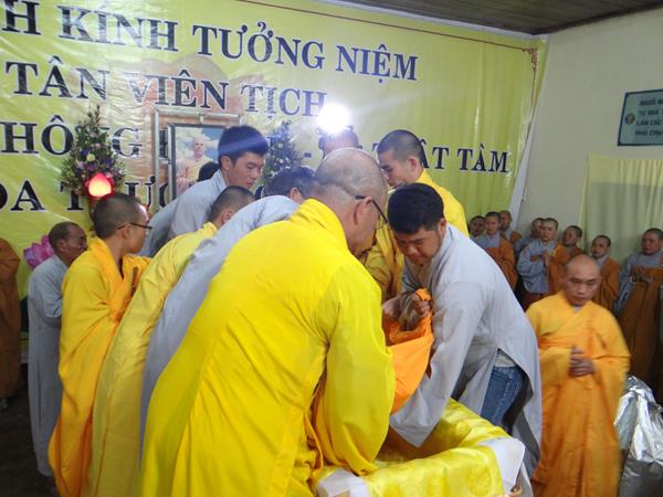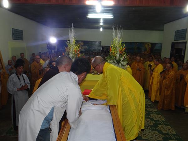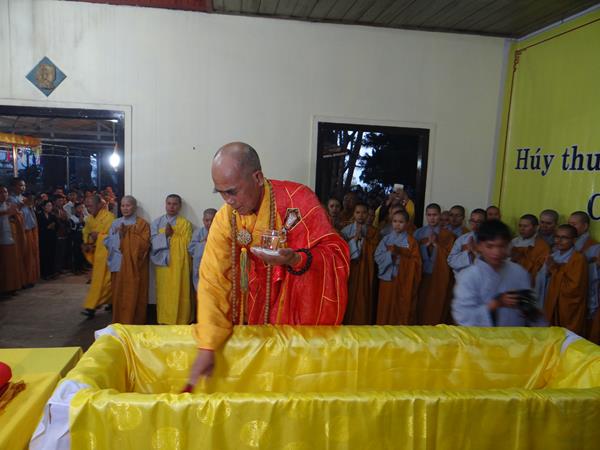 Sau lễ tác bạch thỉnh sư, Chư tôn đức đã cử hành lễ sái tịnh kim quan, cung thỉnh nhục thân Hòa thượng nhập kim quan trong tiếng niệm Phật trầm hùng và chuông trống Bát nhã liên hồi . Sau lễ nhập kim quan, là lễ thọ tang theo nghi thức truyền thống Phật giáo, trong niềm kính thương, mến tiếc .