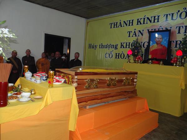 Vào lúc 18h, chiều nay; ngày 16/3/2016 ( nhằm ngày 8/2/Bính Thân),  BTC Tang lễ, môn đồ pháp quyến và hàng ngàn tăng, ni, phật tử đã trang nghiêm, thành kính, thương tiếc cung thỉnh nhục thân cố hòa thượng Thích Không Trú, nhập kim quan tại chùa Viên Giác ( xã Xuân Trường Tp ĐàLạt)  .