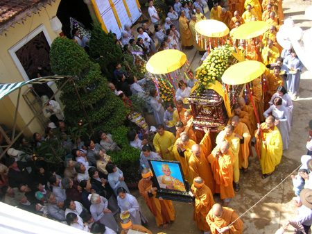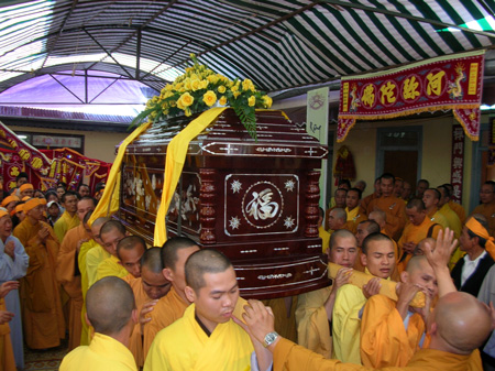 Sau lễ phất trần được đặt dưới sự chứng minh của nhị vị sám chủ: HT. Thích Chánh Kế và HT. Thích Toàn Đức là lễ cung tống kim quan nhập huyền tháp trong khuôn viên chùa Trúc Lâm trong niềm thương tiếc của hàng ngàn Tăng Ni, Phật tử tham dự.