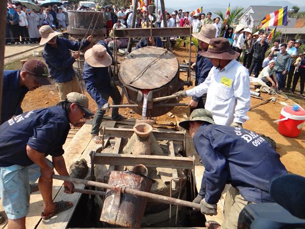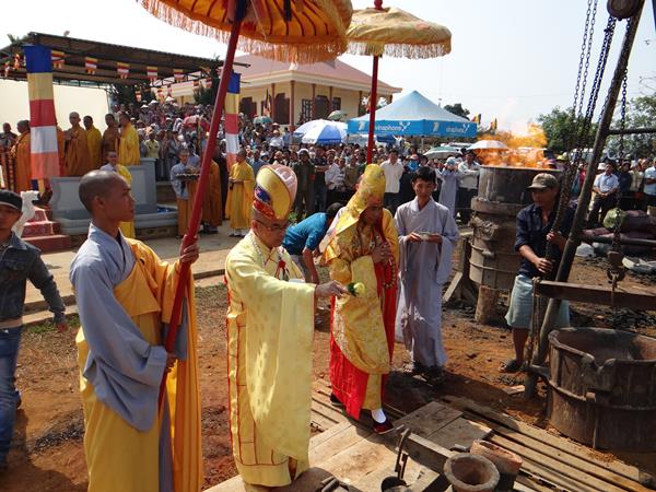 Trong buổi lễ rót đồng, HT. Thích Toàn Đức thay mặt cố TT. Thích Thắng Phước ( ân sư của hai sư cô) cúng dường 100.000.000 đồng và phật tử Nguyễn Thị Minh Duyên cúng dường 100.000.000 đồng, số tiền còn lại do phật tử địa phương phát tâm đóng góp .