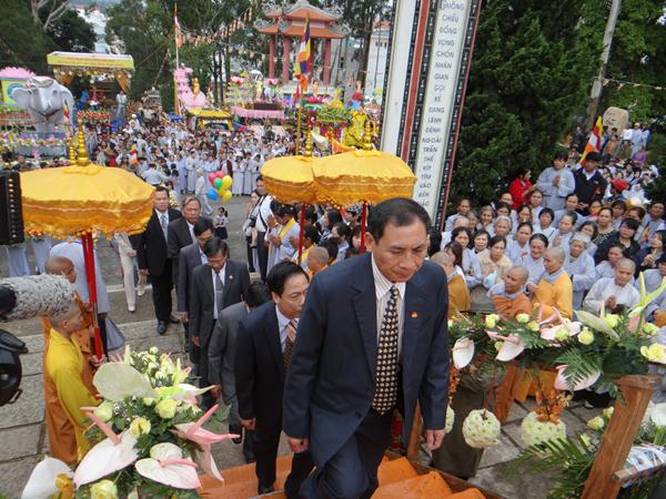 Thay mặt các cấp chính quyền, ông Phạm Kim Khang chủ tịch UBMTTQVN tỉnh Lâm Đồng phát biểu: “ Đại lễ Phật đản tại tỉnh nhà được diễn ra sau sự thành công của Đại lễ Phật đản – Vesak Liên Hiệp quốc tại chùa Bãi Đính, tỉnh Ninh Bình do Giáo hội Phật giáo Việt Nam đăng cai tổ chức từ ngày 07 đến ngày 11/5/2014 (nhằm ngày mồng 09 đến ngày 13 tháng 4 năm Giáp Ngọ) với sự phối hợp của các tổ chức Quốc tế và sự giúp đỡ, tạo điều kiện của Chính phủ Việt Nam, là minh chứng cụ thể khẳng định vai trò, vị trí của Giáo hội Phật giáo Việt Nam và của nhà nước Việt Nam ngày càng được nâng cao trên trường Quốc tế .