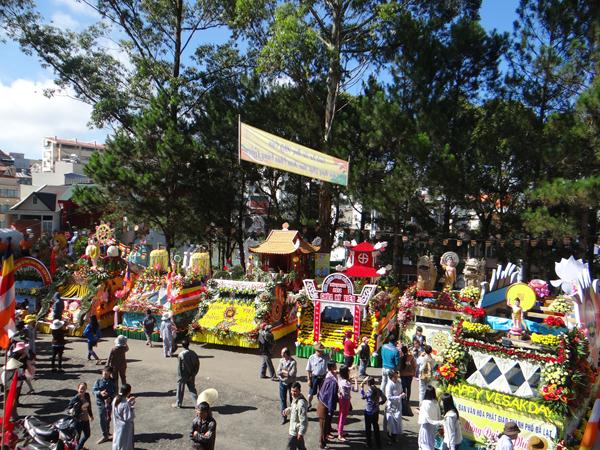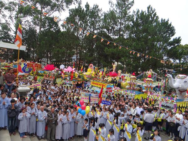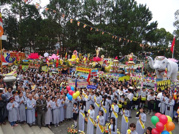 Sau phần nghi thức Phật đản, cung tuyên pháp ngữ, thả bong bóng bay cầu nguyện hòa bình, TT. Thích Thanh Tân, Phó BTSPGLĐ đã đọc bài cảm tạ của ban tổ chức Đại lễ Phật đản và những lẳng hoa tươi thắm, những lời chúc mừng hoan hỷ của các cơ quan ban nghành đoàn thể và phần diễu hành xe hoa đã khép lại chương trình Đại lễ kỷ niệm lần thứ 2.558 năm ngày Đức Phật đản sanh tại tỉnh Lâm Đồng sáng Rằm tháng Tư âm lịch trong niềm hân hoan, an lạc của hàng ngàn tăng, ni phật tử tham dự.