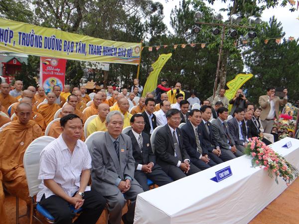 Quang lâm chứng minh và tham dự Đại lễ có HT.Thích Tánh Hải UVHĐCM TW – GHPGVN, HT. Thích Toàn Đức, UV. HĐCMTW GHPGVN – Phó Trưởng ban thường trực BTSPGLĐ, HT.Thích Chánh Kế, HT.Thích Giác Ngộ, HT.Thích Minh An – HT. Thích Chơn Quang CM BTS GHPGVN tỉnh Lâm Đồng cùng chư tôn thiền đức tăng, ni trong BTS Phật giáo các huyện, các tự viện và hàng ngàn phật tử đến từ các đạo tràng các huyện : Di Linh, Đơn Dương, Lâm Hà, Đức Trọng, Cát Tiên và Tp.Đà Lạt.
