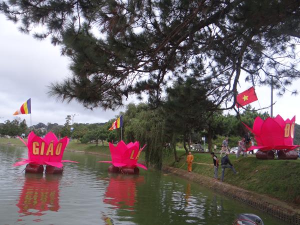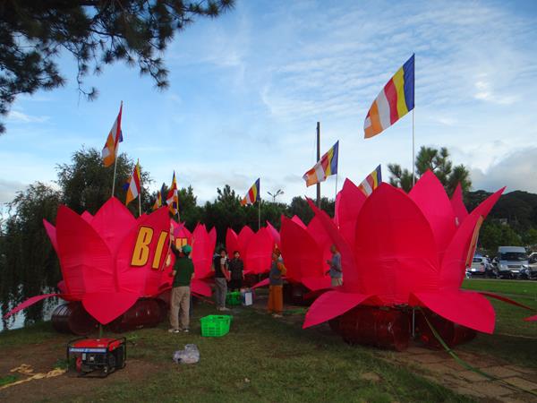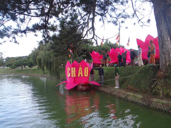 Sau gần một tháng thiết kế, thi công, 10 đóa hoa sen với đường kính cao, rộng 4 mét đã được chư tăng, Phật tử Hệ phái Khất Sĩ trần thiết và thả nổi trên mặt Hồ Xuân Hương Tp Đà Lạt để chào mừng Đại hội Đại biểu Phật giáo tỉnh Lâm Đồng lần thứ IX ( nhiệm kỳ 2017 – 2020) sẽ được diễn ra tại hội trường, trường trung cấp Phật học Lâm Đồng vào hai ngày 29 và 30 tháng 9 năm 2017 ( nhằm ngày 10 và 11 tháng 8 năm Đinh Dậu) sắp đến .