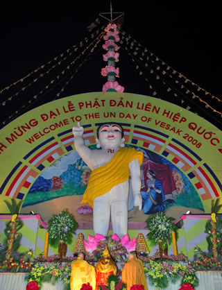 Tại đêm lễ hội, 49 đóa sen lớn và một trăm ngàn đoá sen nhỏ lần lượt “nở” trên mặt hồ Xuân Hương. Tác phẩm biển hoa này được gửi cả tâm nguyện và sức lực của hàng ngàn Tăng Ni Phật tử tỉnh Lâm Đồng từ mấy tháng nay nhằm mục đích duy nhất là chờ đợi phút giây thiêng liêng cung đón bảy bước sen thị hiện Đản sinh của đức Phật năm xưa.
