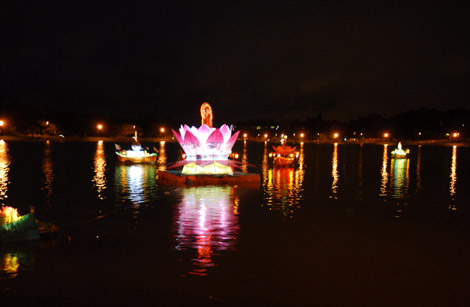 Hàng trăm ngàn ngọn đèn sen nhỏ cũng được thả xuống mặt hồ như mang lại ánh sáng và hơi ấm cho nhân loại. Đây là đêm hội độc đáo, hoành tráng và ấn tượng nhất trong tuần lễ văn hoá Phật giáo tại Lâm Đồng và đây cũng chính là điểm nhấn quan trọng tạo nhiều ấn tượng, nhiều niềm hân hoan trong tâm thức của người con Phật và du khách gần xa.