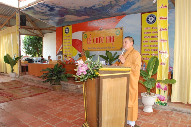 Từ sáng sớm, quý cụ Ông cụ Bà  đã được con cháu đưa đông đủ tại hội trường. Cờ hoa, biểu ngữ và sắc áo rực rỡ của quí cụ cùng với tiếng hát của đội văn nghệ càng làm tăng thêm không khí vui tươi của tiết đầu xuân. Ba hồi chuông trống Bát Nhã vang lên trầm hùng cung thỉnh Thượng Tọa Trụ Trì cùng chư Tôn Đức quang lâm, hòa chung trong những lời ca tiếng nhạc chào mừng, ngợi ca công đức Thượng Tọa Trụ Trì.