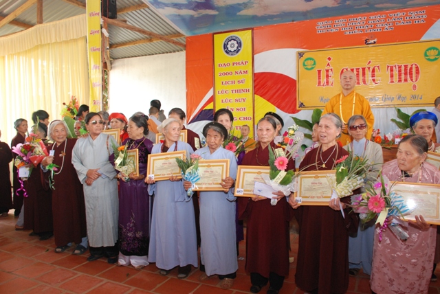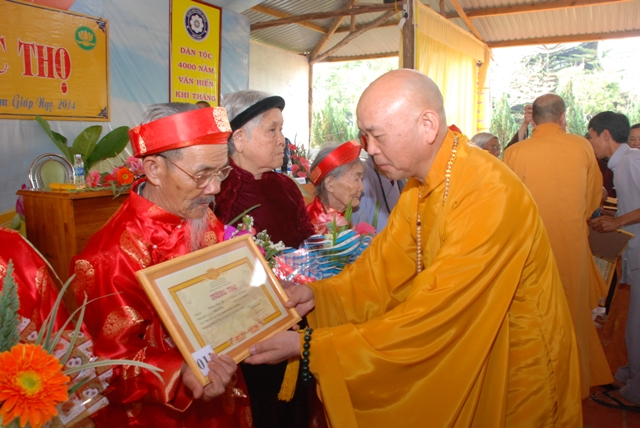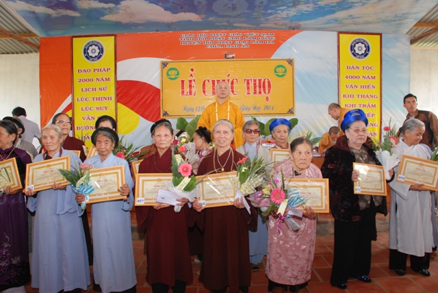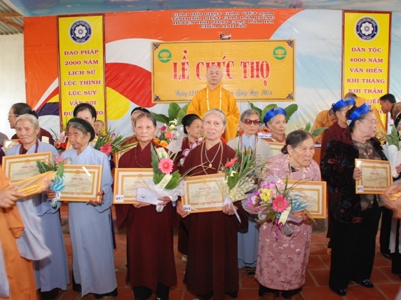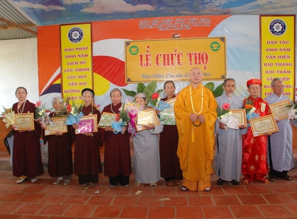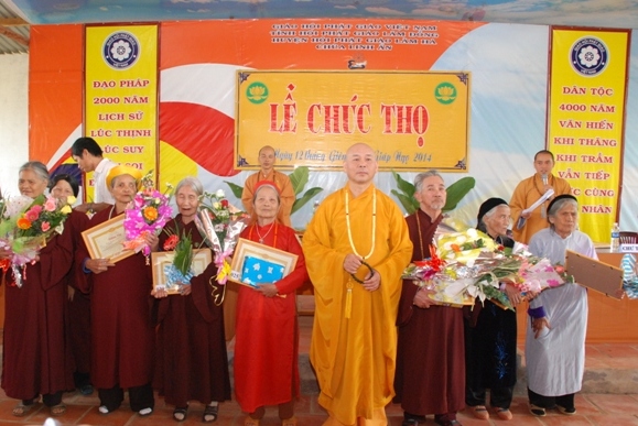 Sáng ngày 12 tháng giêng năm Giáp Ngọ 2014 – Phật Lịch 2558,  giữa tiết thanh minh an lành của lễ Thượng Nguyên, trong pháp hội trang nghiêm thanh tịnh, Thượng Tọa Thích Tâm Vị Phó Trưởng ban Pháp Chế Trung Ương GHPGVN, trưởng ban Pháp Chế Ban Trị Sự GHPGVN tỉnh Lâm Đồng, Trưởng ban Trị Sự GHPGVN huyện Lâm Hà, Trụ Trì chùa Linh Ẩn thị trấn Nam Ban- huyện Lâm Hà- tỉnh Lâm Đồng. Đã tổ chức Lễ Mừng Thọ cho 109 đạo hữu cao niên ; (1 Cụ tròn 100 tuổi, 3 Cụ 95 tuổi, 11 Cụ 90 tuổi, 10 Cụ 85 tuổi, 31 Cụ 80 tuổi,    22 Cụ 75 tuổi, 31 Cụ 70 tuổi.), thuộc Thị Trấn Nam Ban, xã Gia Lâm, Xã Nam Hà, xã Đông Thanh, Xã Mê Linh huyện Lâm Hà.