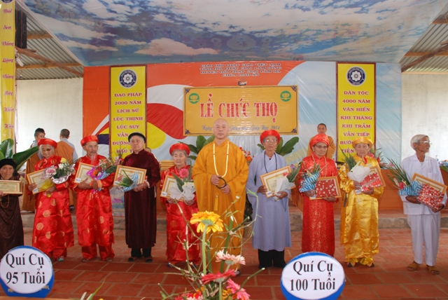 Quý cụ Ông cụ Bà không thể che dấu được niềm vui nỗi xúc động. Niềm hân hoan tràn lên khóe mắt. Lòng vui sướng và niềm hân hoan khi các cụ được chính Thượng Tọa Trụ Trì trao bảng mừng thọ và tặng hoa cùng với những lời chúc thọ đầy hoan hỉ của con cháu. Bài hát “Đôi chân trần” của nhạc sĩ I-Phôn và bài “Trái Tim của Mẹ” của nhạc sĩ  Chân Quang được Phật Tử Nguyên Lê thể hiện là tấm lòng tha thiết của những người con kính dâng lên cha mẹ, ông bà và những bậc cao niên đang hiện hữu. Tiếng nói cười rộn rã, những lời chúc tụng, những vòng tay thân thương vẫn còn vang mãi, vương vấn mãi cho đến tận phút giây bế mạc.