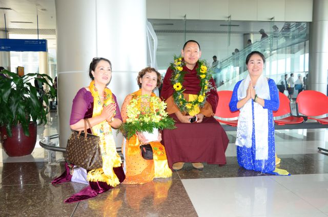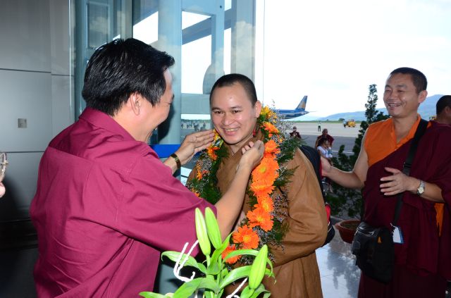 Đại đức Thích Trí Định trụ trì chùa Giác Hải cùng Phật tử đã cung kính cung rước phái đoàn từ sân bay Liên Khương Tỉnh Lâm Đồng. Ngài KhenChen cùng phái đoàn về chùa lễ Phật, và dùng cơm chiều trong niềm hoan hỷ vô biên.