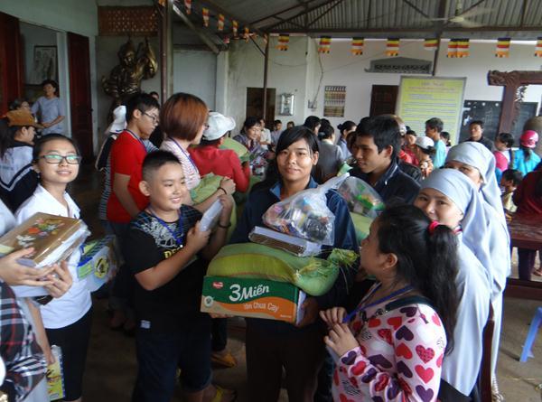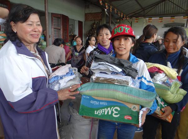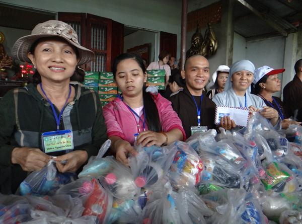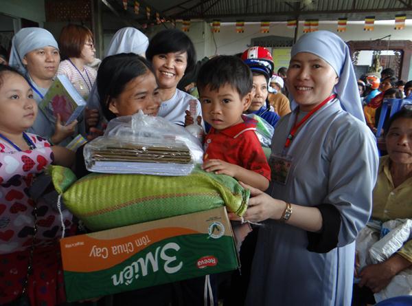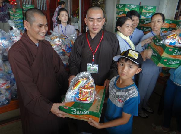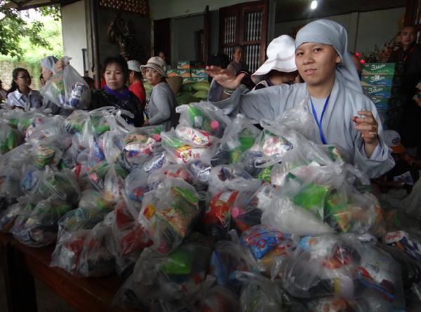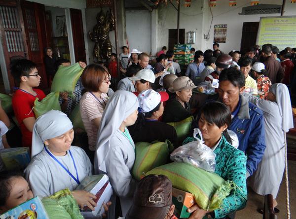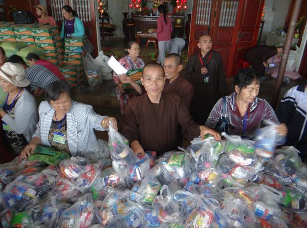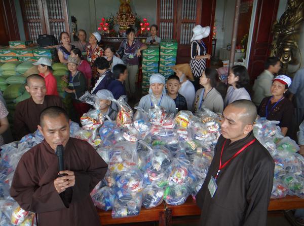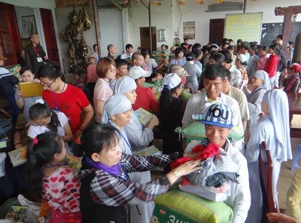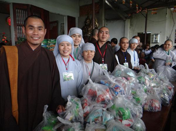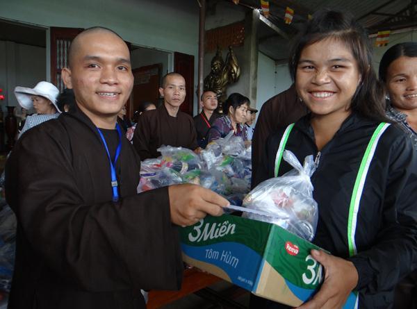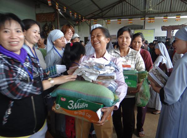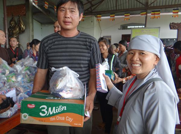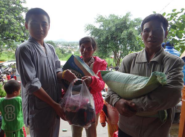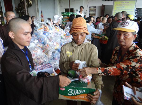 Trung tuần tháng 7 vừa qua, thông qua Ban từ thiện Phật giáo tỉnh Lâm Đồng, nhóm từ thiện “ Tấm lòng nhân đạo” Tp Hồ Chí Minh do ĐĐ. Thích Linh Phú làm trưởng đoàn đã đến thăm và tặng 200 phần quà, mỗi phần gồm : 10 kg gạo, 1 thùng mì ăn liền, bánh kẹo, quần áo cùng nhiều vật phẩm khác, trị giá trên 500.000 đồng, cho bà con nghèo, người dân tộc thiểu số tại chùa Quang Đức huyện Đam Rông tỉnh Lâm Đồng .