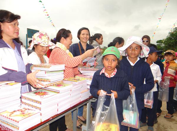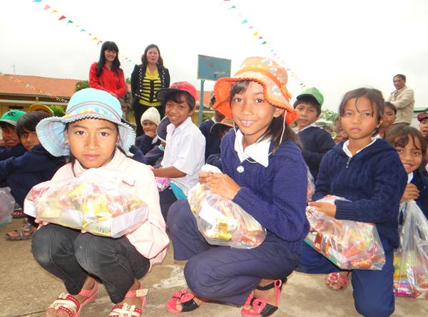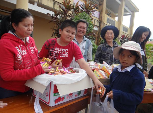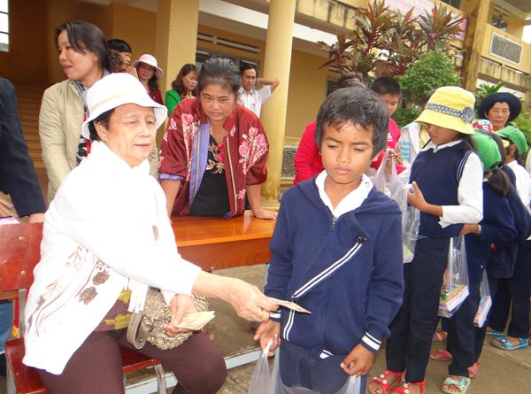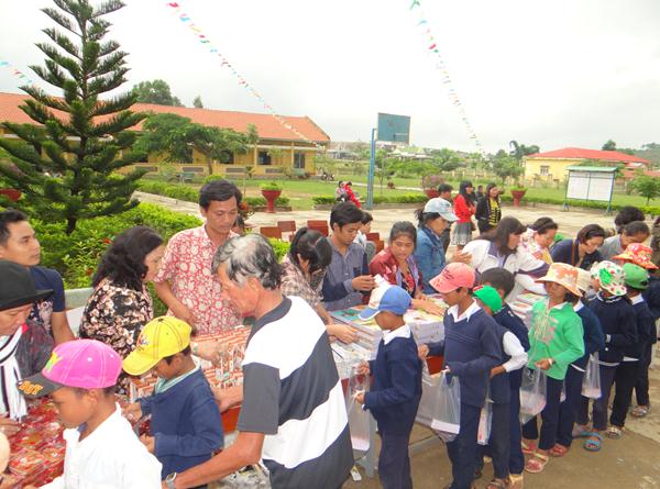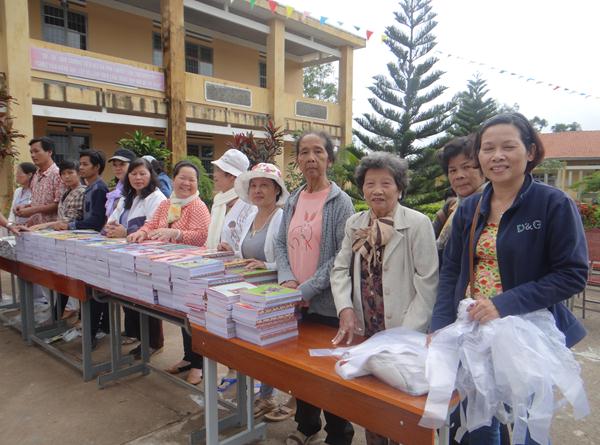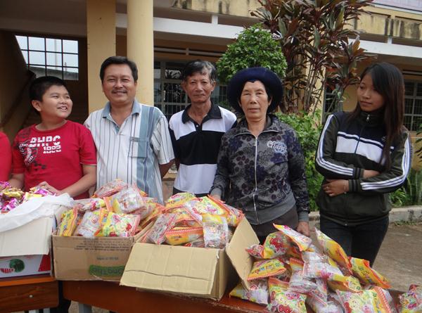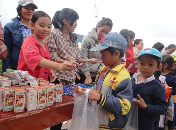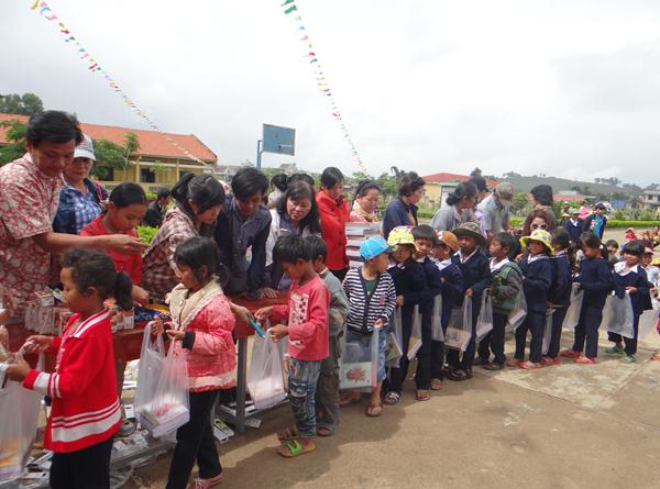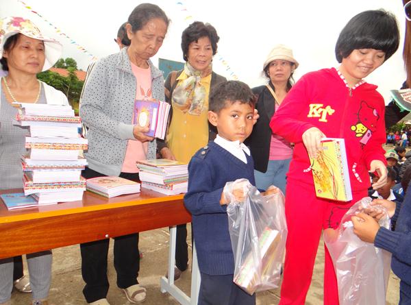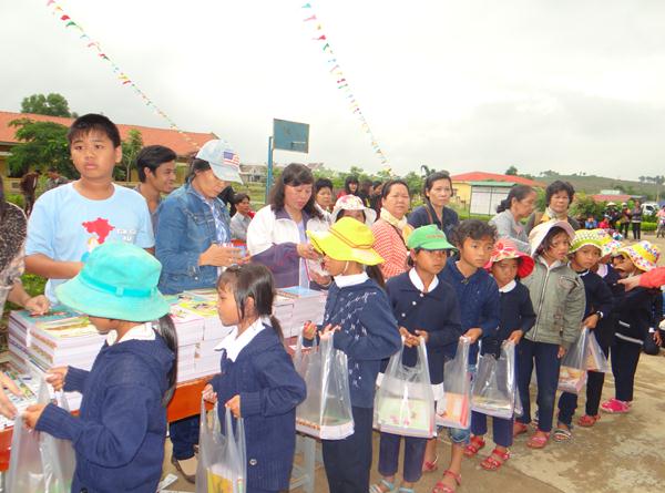 Cũng nhân dịp này, đoàn đã đến thăm và trao tặng 200 phần quà, mỗi phần gồm 10 cuốn vỡ, bút viết, bánh trung thu , trị giá trên 100.000 đồng một phần cho các em học sinh, trường tiểu học Ka Đơn huyện Đơn Dương .