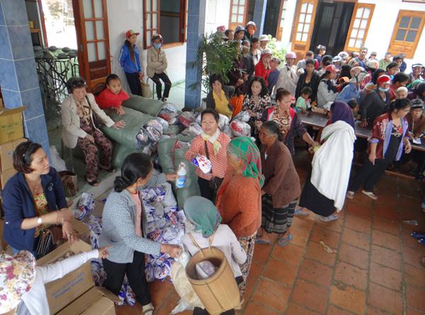 Trong chuyến hành hương, tham quan Tp Hoa Đà Lạt; nhân dịp Quốc Khánh 2/9 . Nhóm từ thiện Phật tử Cúc Biên, quận 10 Tp Hồ Chí Minh đã kết hợp với Ban Từ Thiện Phật giáo tỉnh Lâm Đồng, Hội Chữ Thập Đỏ và chùa Giác Châu huyện Đơn Dương, trao tặng 400 phần quà . Mỗi phần gồm 10 kg gạo, 1 thùng mì ăn liền, cùng nhiều vật phẩn khác, trị giá 300.000 đồng một phần, cho bà con nghèo người Dân Tộc thiểu số ở hai xã Ka Đơn và P Poh’ huyện Đơn Dương .