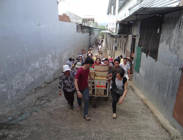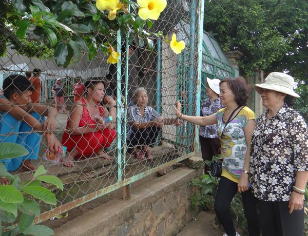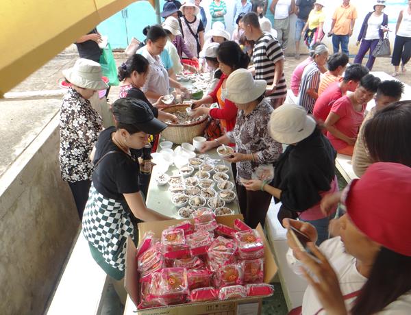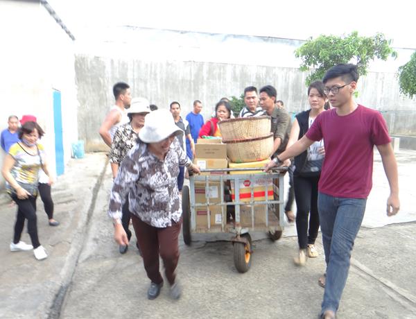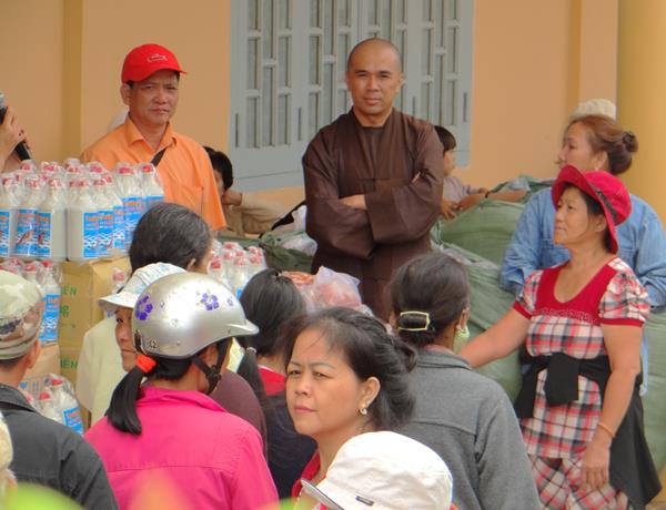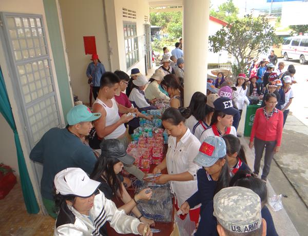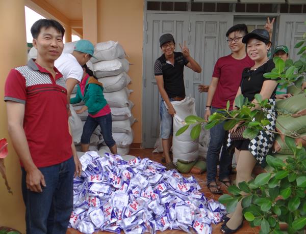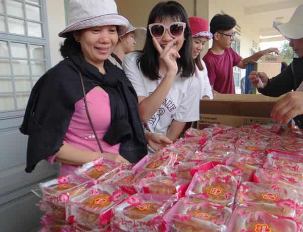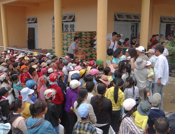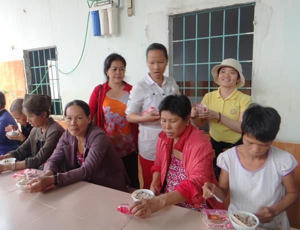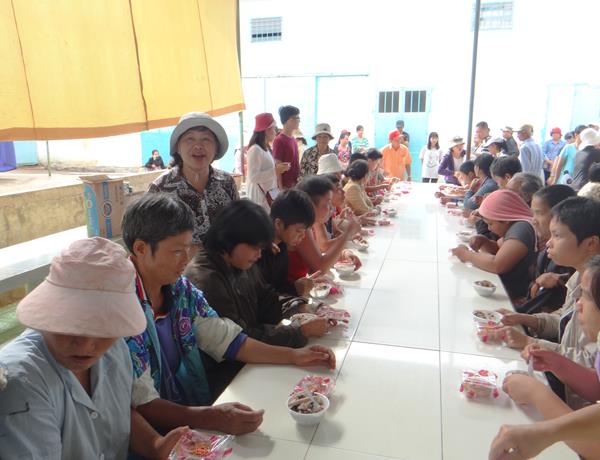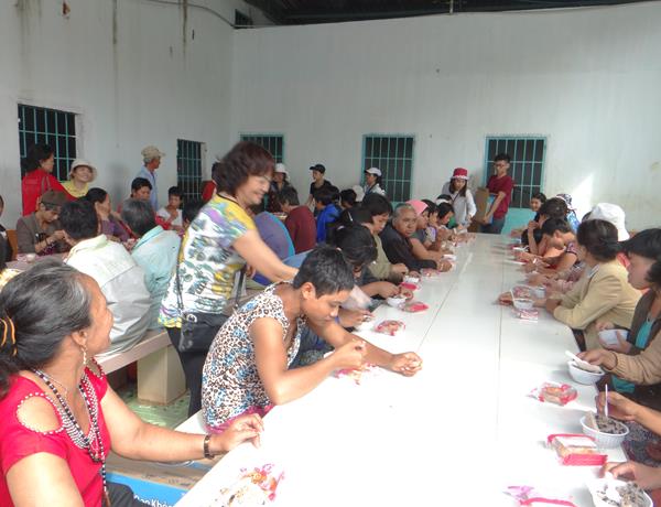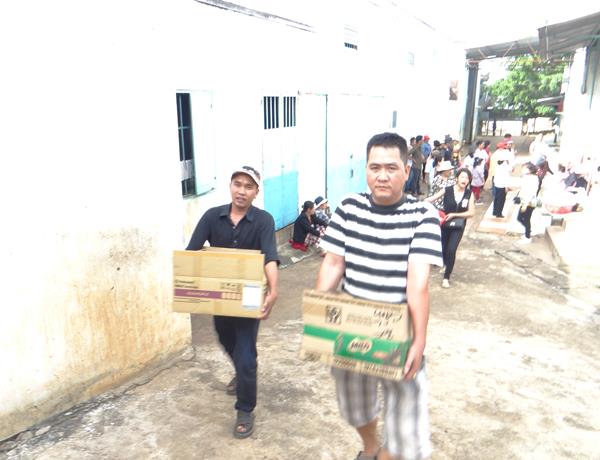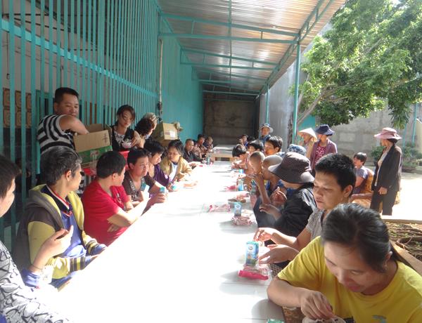 Trên đường về; đoàn ghé thăm và trao 400 xuất ăn liền; bánh trung thu ; sửa hộp … cho 400 bệnh nhân bị bệnh tâm thần đang ở tại trung tâm từ thiện Trọng Đức huyện Đức Trọng .