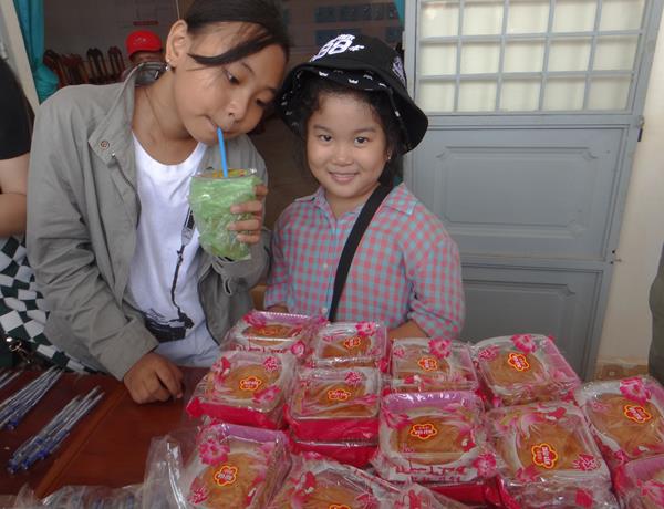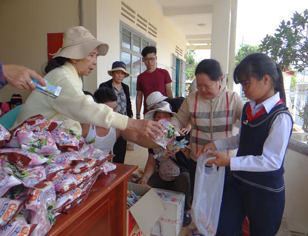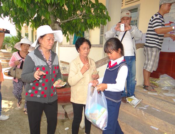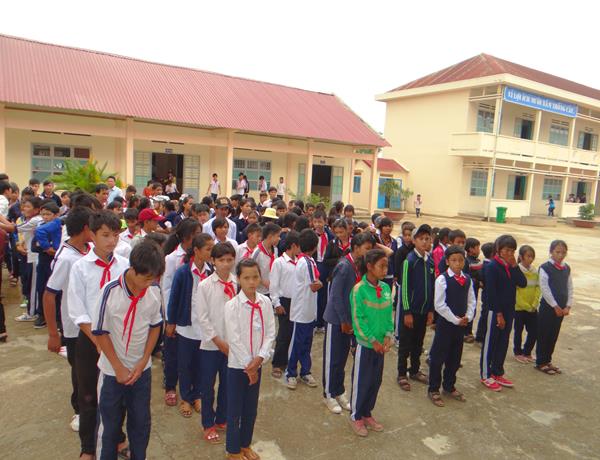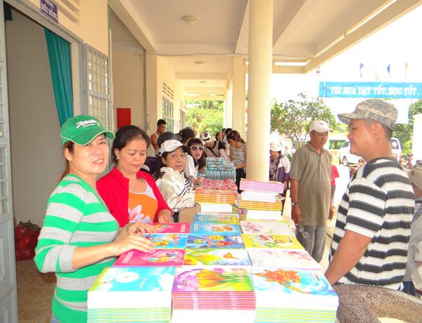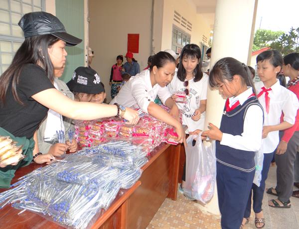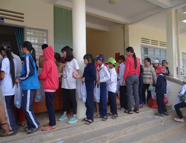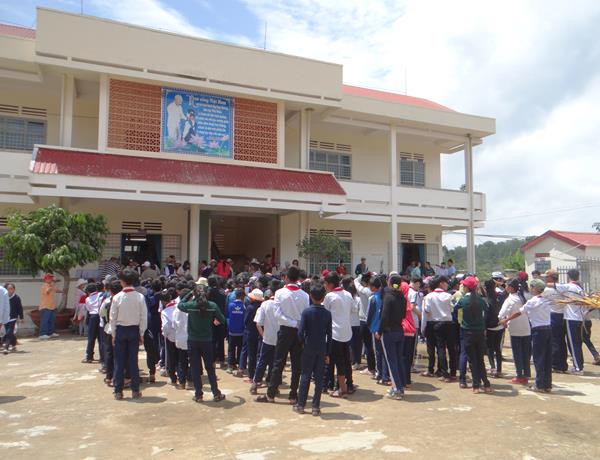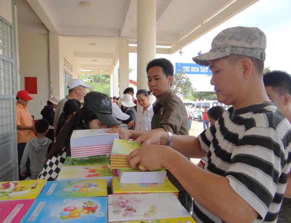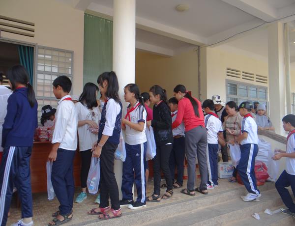 Buổi trưa cùng ngày; đoàn đã đến thăm và tặng 2.000 cuốn vở, 3.000 cây viết máy, tập sách; bánh kẹo trung thu cho 200 em học sinh trường phổ thông cơ sở xã Phi Liêng .