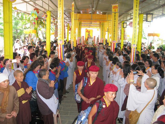 Như tin chúng tôi đã đưa, sau khi đến TP Hoa Đà Lạt vào chiều ngày 10/112011, sáng hôm qua Đức pháp vương Gyalwang Drukpa cùng phái đoàn Phật Giáo ấn Độ đã quan lâm tại Thiền Viện Vạn Hạnh chứng minh gia trì pháp hội quán đảnh MANDALA tức tai Dược Sư Phật cầu nguyện quốc thái dân an và pháp hội A Di Đà đại lễ cầu siêu dưới sự tham dự của hàng trăm tăng ni phật tử địa phương.