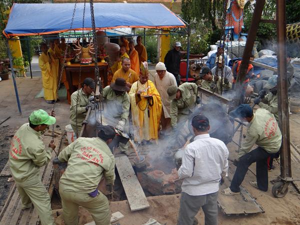 Nghệ nhân, Đắc An ( chủ cơ sở đúc đồng Đắc An) cho biết, Tổ đình Linh Quang lần này đã hợp đồng với cơ sở đúc 1 đại hồng chung có chiều cao 2,25m, đường kính miệng 1,25m, trọng lượng 1.500 kg và 4 bảo tượng đức Phật Quán Thế Âm, Bồ tát Đại Thế Chí, Ngài Hộ Pháp và Tiêu Diện Đại Sĩ . Mỗi tượng có chiều cao 1,80m, 1 tượng Đức Phật Chuẩn Đề, 7 Bảo khánh, 3 Bảo chúng với tổng trọng lượng khoảng 5.000 kg .