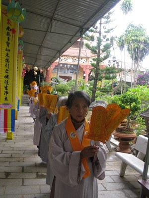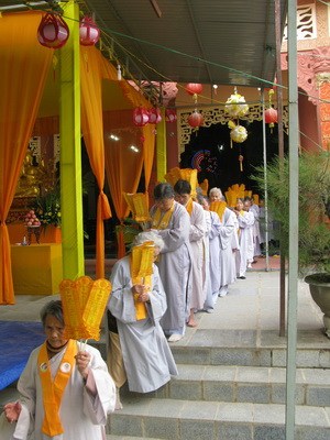 Sau khóa lễ cúng dường Trai Tăng, tuyên sớ kỳ siêu, tụng kinh Địa Tạng, Vu Lan và nghe giảng pháp, sáng hôm qua 12/7, khóa lễ Thỉnh Linh Đề Vị cũng đã được chư tăng bổn tự long trọng cử hành dưới sự chứng minh của TT Thích Viên Thanh Thanh kiêm sám chủ đàn Giải Oan Bạt Độ Vu Lan Thắng Hội tại TV Vạn Hạnh.