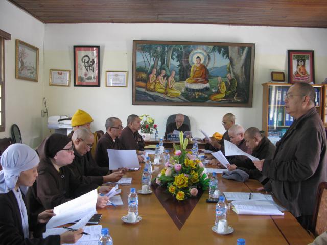 Cuộc họp cũng đã suy cử chủ tọa đoàn, thư ký đoàn , kiểm soát đoàn và phân công trách nhiệm cụ thể chư tôn đức trình bày các văn kiện trước Đại hội . …