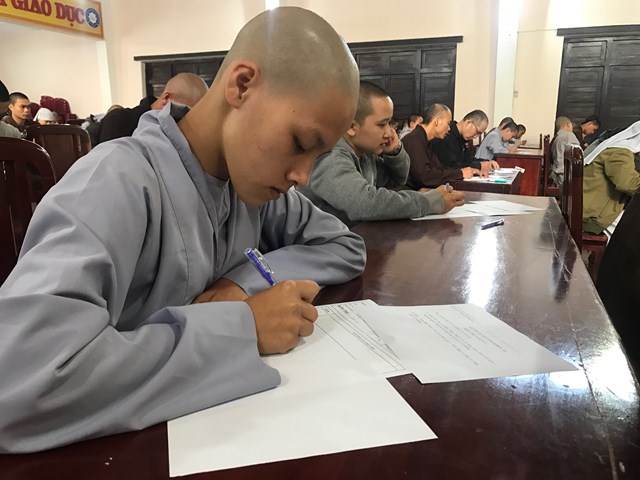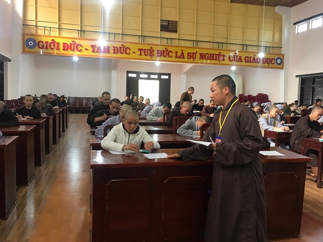 Khai mạc kỳ thi tuyển sinh sáng nay, sau thời niệm Phật cầu gia bị. Hoà thượng hiệu trưởng đã có lời thăm hỏi và sách tấn, động viên đến toàn thể thí tham dự kỳ thi phải cố gắng nổ lực tự thân để tập trung làm bài đạt được kết quả cao cũng như phải trung thực và nghiêm túc trong xuyên suốt kỳ thi. Đại diện Hội đồng thi ĐĐ. Thích Đồng Thanh đã đọc nội quy và trao đề thi đã được niêm phong cẩn thận đến Ban Giám thị Hội đồng thi.