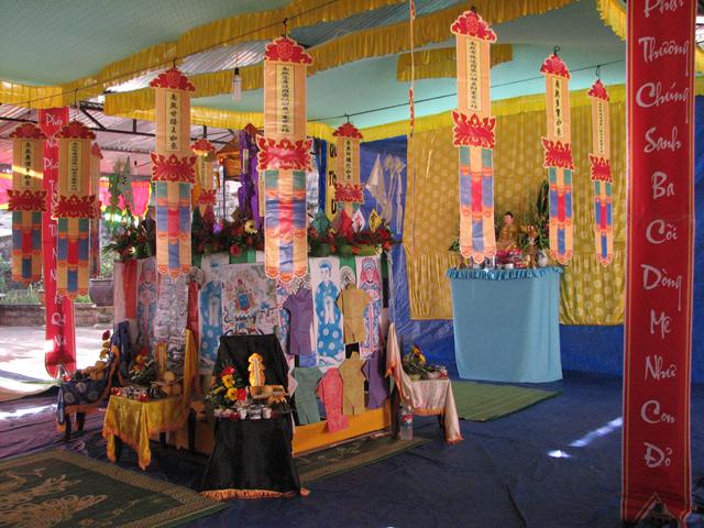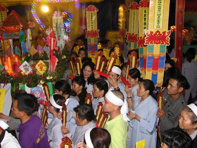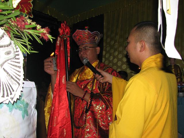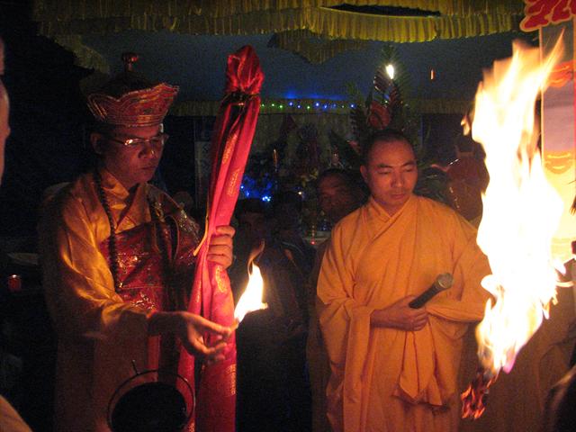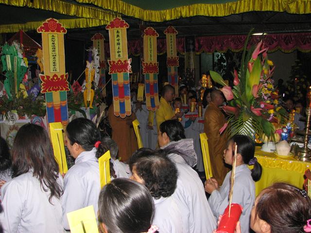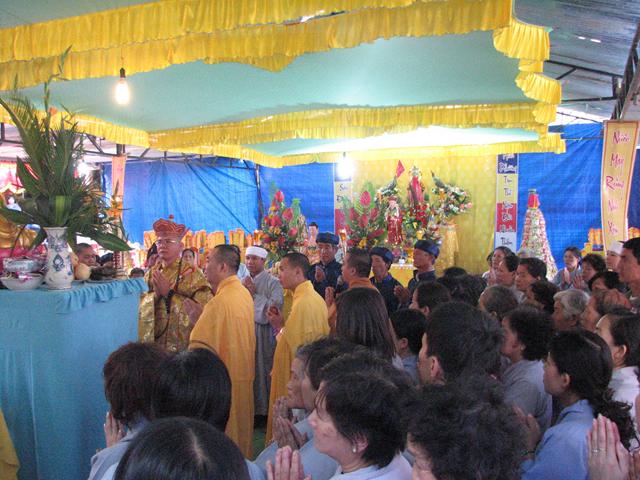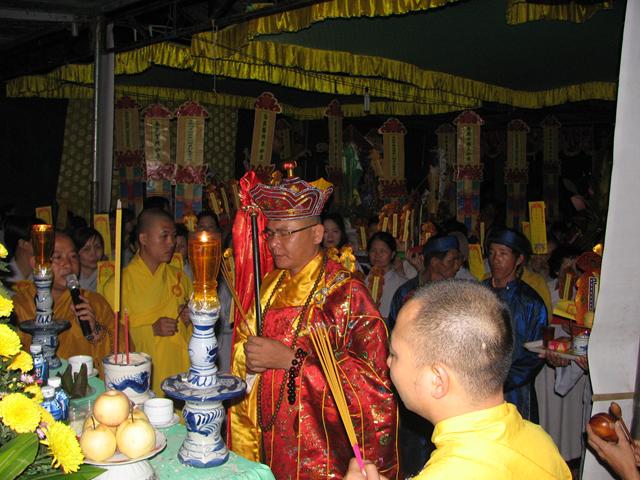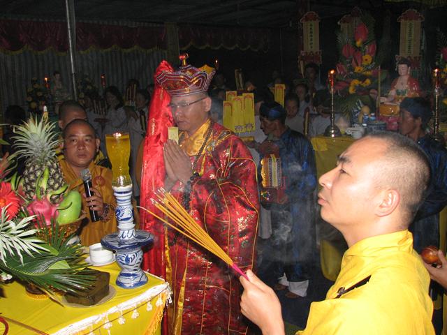 Buổi lễ đã diến ra trong không khí trang nghiêm thanh tịnh với các khóa lễ: Cáo giang sơn – Hưng tác thượng đại tràng phan, Lễ nghinh phan sơn thủy nhập đàn, Sái tịnh đàn tràng, bạch Phật khai Kinh, Thỉnh Tiêu Diện Đại Sĩ, thỉnh Linh đề vị, thỉnh Pháp sư đăng đàn thuyết linh, Đại lễ cầu siêu giải oan bạt độ và chẩn tế âm linh cô hồn.