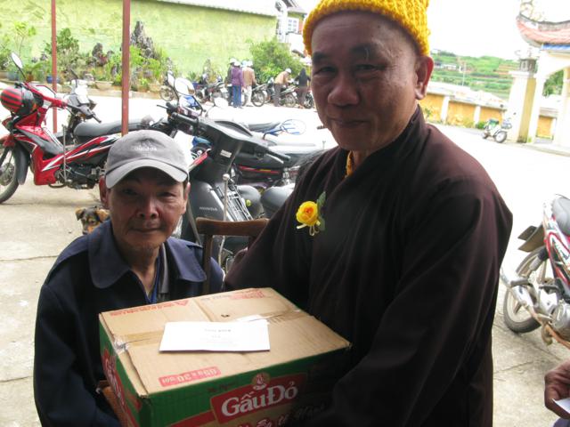 Nhân dịp đại lễ báo hiếu Vu Lan , TT Thích Thanh Tân viện chủ tổ đình Linh Quang TP Đà lạt đã trao tặng 70 phần quà mỗi phần gồm 1 thùng mì, 10 kg gạo và 200.000 tiền mặt cho các hội viên hội người khuyết tật trên địa bàn TP Đà Lạt .