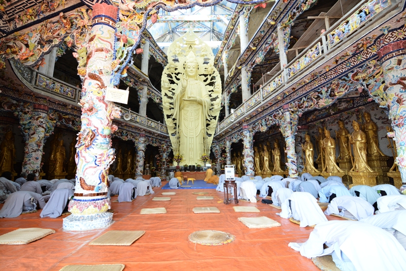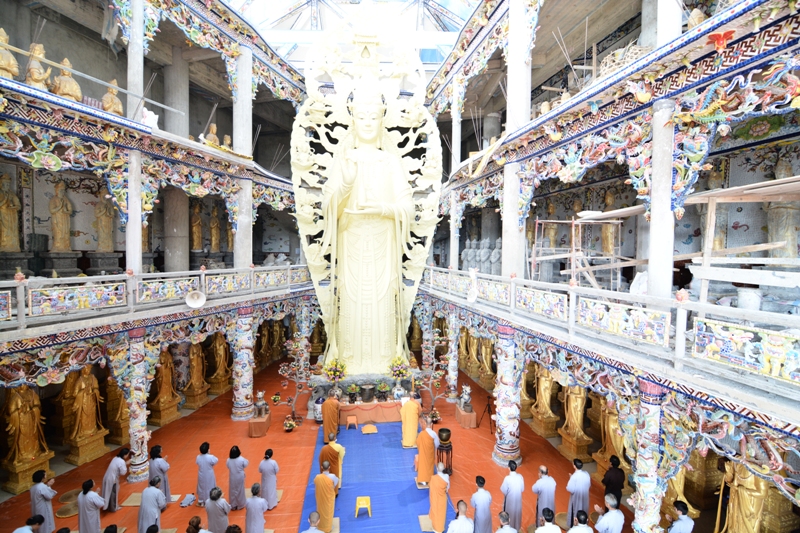 Điện thờ Quán Thế Âm gồm 3 tầng, mỗi tầng thờ 108 tượng Quán Thế Âm, chính giữa điện là bảo tượng cao 17m, uy nghiêm, thanh thoát … Công trình đã tạm hoàn thiện ở tầng 1 để phật tử hành hương lễ bái. 2 tầng trên hiện vẫn còn tiếp tục thi công. Sau khi hoàn thành đây sẽ là một công trình mang đậm nét văn hóa tâm linh hòa quyện bản sắc dân tộc Việt … là điểm đến của khách du và phật tử khắp về đảnh lễ, chiêm bái … mẹ hiền Quán Thế Âm