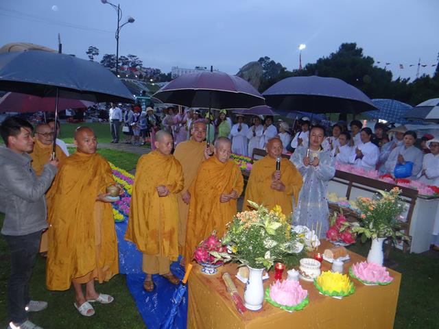 Dưới sự chứng minh của của HT. Thích Giác Ngộ, UV.HĐCM TƯ GHPGVN và HT. Thích Giác Cảnh, UV. HĐTSTƯ – Phó BTS GHPGVN tỉnh Lâm Đồng, chư tôn đức tăng, ni, phật tử Hệ phái Khất sĩ tại Tp Đà Lạt đã tổ chức lễ phóng hoa đăng, thuyền hoa tại hồ Xuân Hương Tp Đà Lạt .