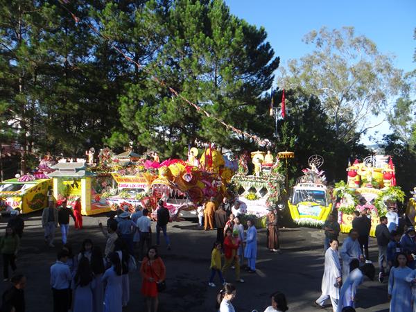 Cuối chương trình là phần diễu hành xe hoa cúng dường kỷ niệm ngày Đản sanh của Đức Phật trong niềm hân hoan, an lạc của hàng trămTăng Ni, Phật tử ở Tp Đà Lạt.