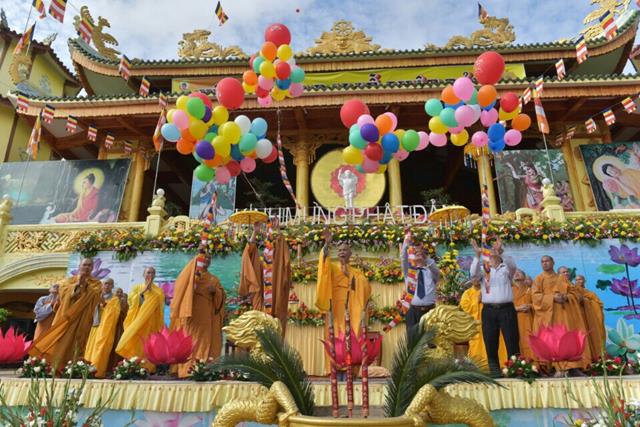 Sau khi các ban nghành tặng hoa chúc mừng, nghi thức Đại lễ Phật đản, phút nhập từ bi quán và thả chim bồ câu, thả bong bóng bay cầu nguyện hòa bình .