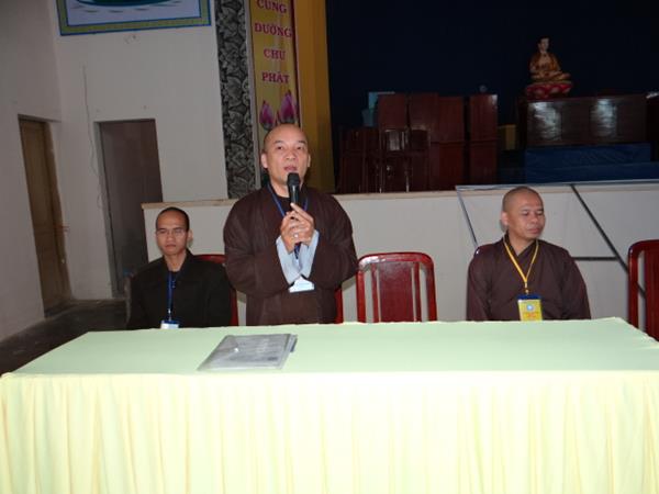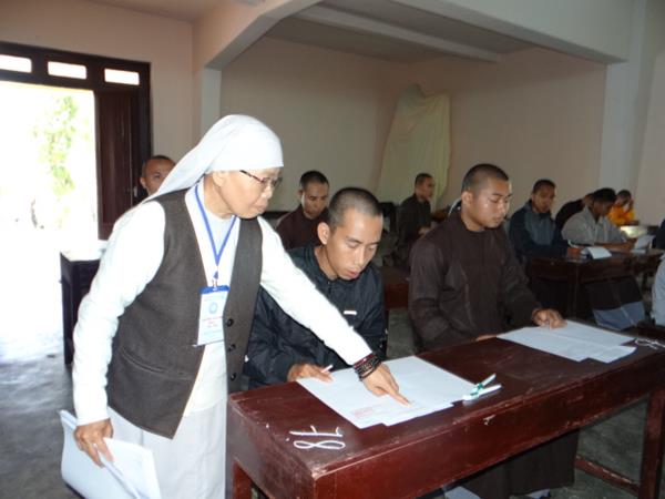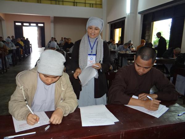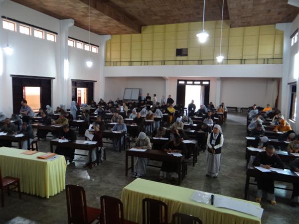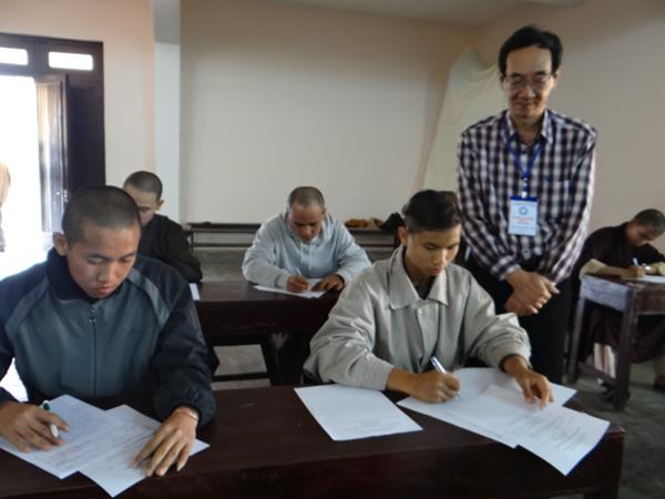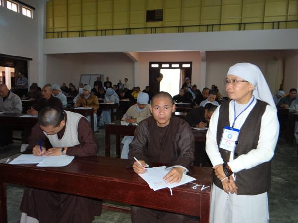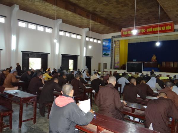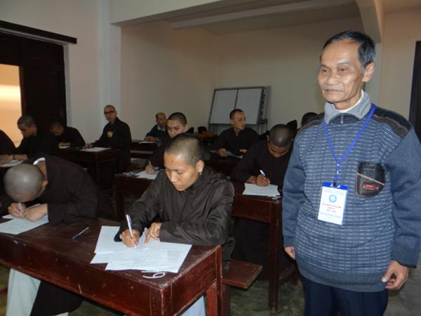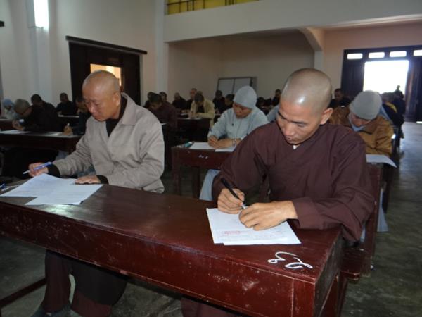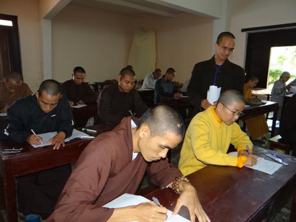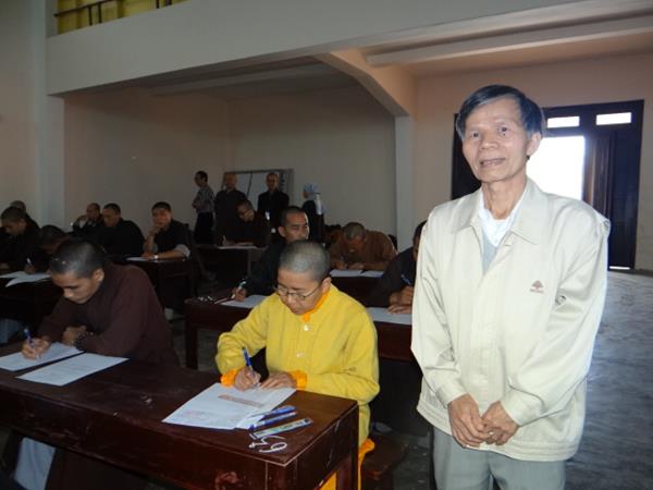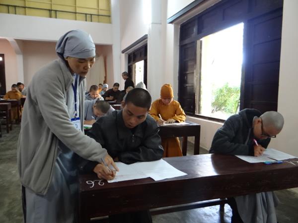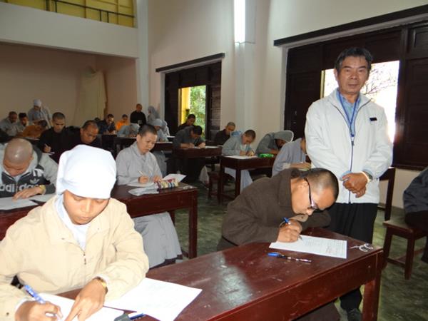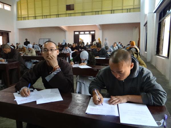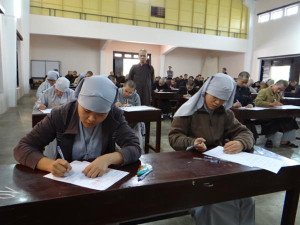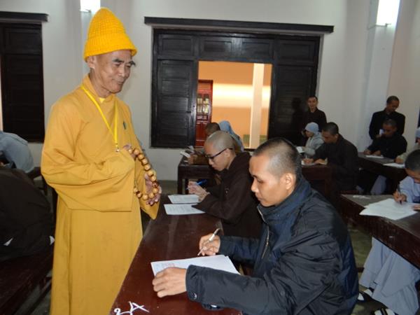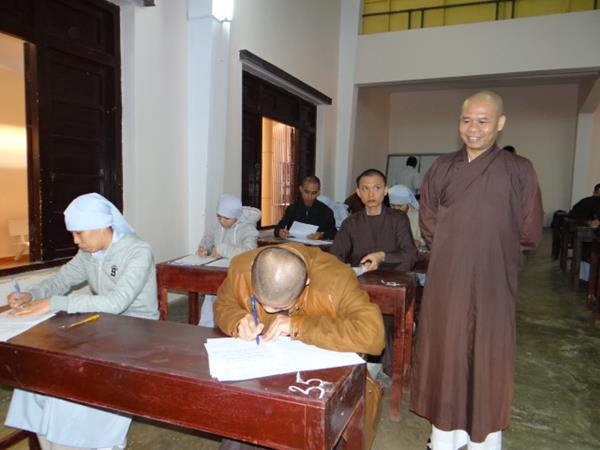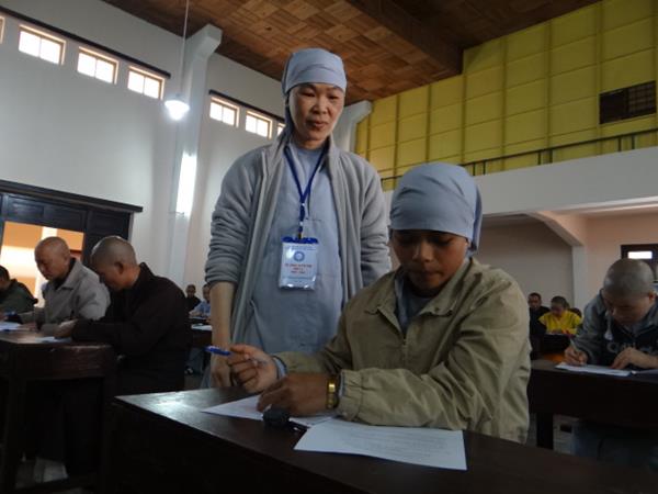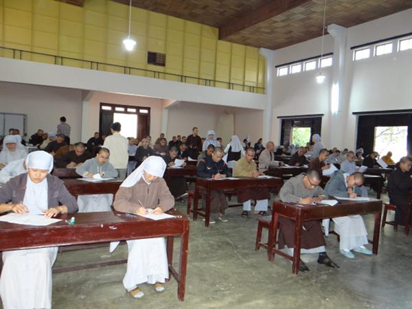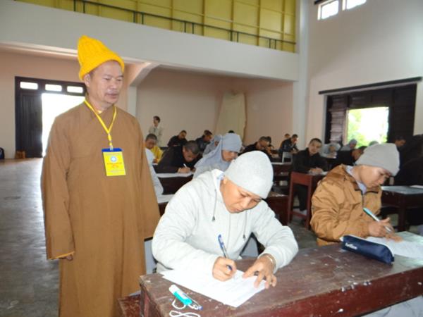 HT. Thích Toàn Đức . UV. HĐTS GHPGVN – Trưởng BTS GHPGVN tỉnh Lâm Đồng , Hiệu trưởng nhà trường – Chủ tịch Hội đồng thi cho biết : Tất cả các thí sinh đều phải tham gia 3 môn thi viết, buổi sáng giáo lý ( 120 phút) , buổi chiều thi môn việt văn và 2 môn ngoại ngữ tự chọn ( anh văn và hán văn), thời gian 90 phút .
