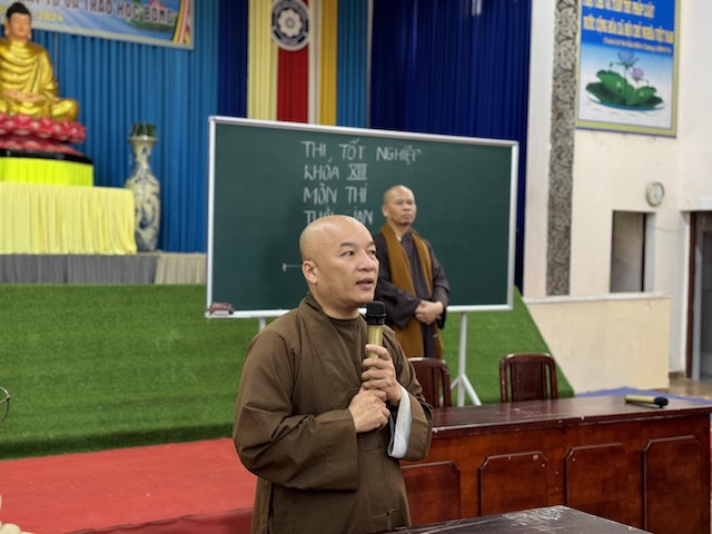 Tham dự có Thượng tọa Thích Vạn Trí, Phó Ban Trị Sự GHPGVN tỉnh Lâm Đồng, Phó Hiệu Trưởng Trường Trung cấp Phật học Lâm Đồng thay mặt cho Ban Giám Hiệu phát biểu chỉ đạo công tác tổ chức thi và có lời động viên, nhắc nhở đối với Tăng ni sinh tham gia kì thi nghiêm túc, và tinh cần hoàn thành tốt bài thi để có kết quả tốt đẹp, việc hoàn thành chương trình học trung cấp sẽ mở ra những nhân duyên bước tới những con đường học tập xa hơn và có nhiều cơ hội hơn để phụng sự cho Phật giáo.