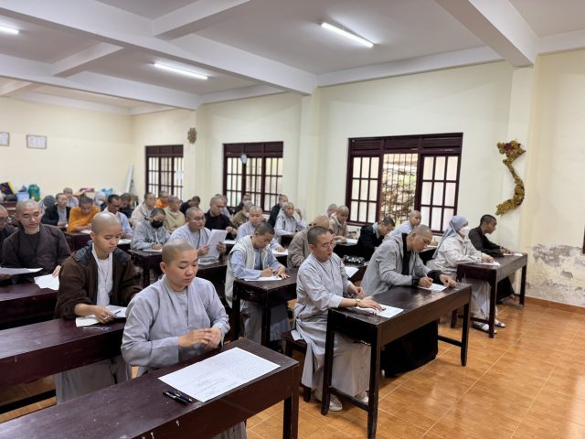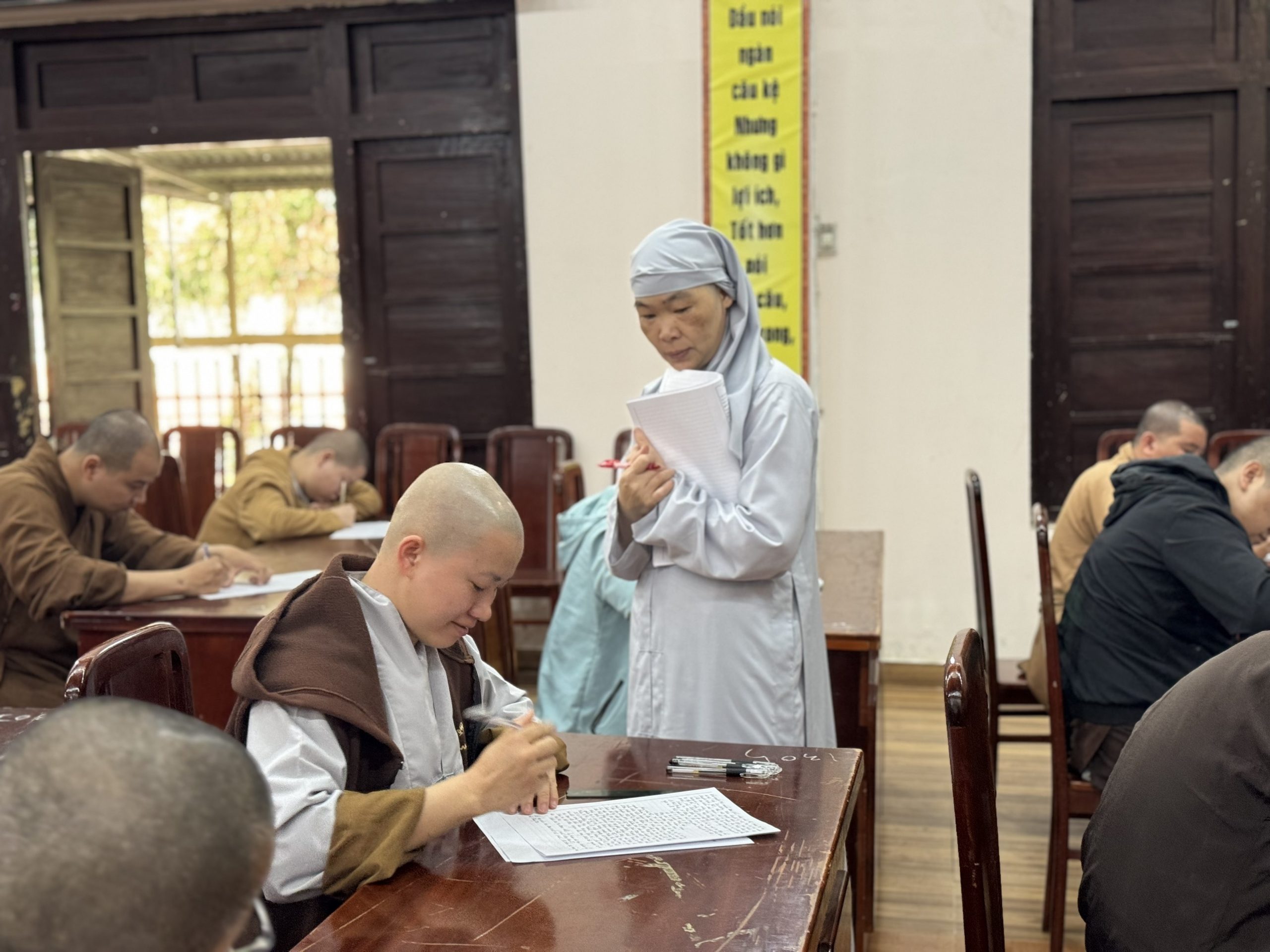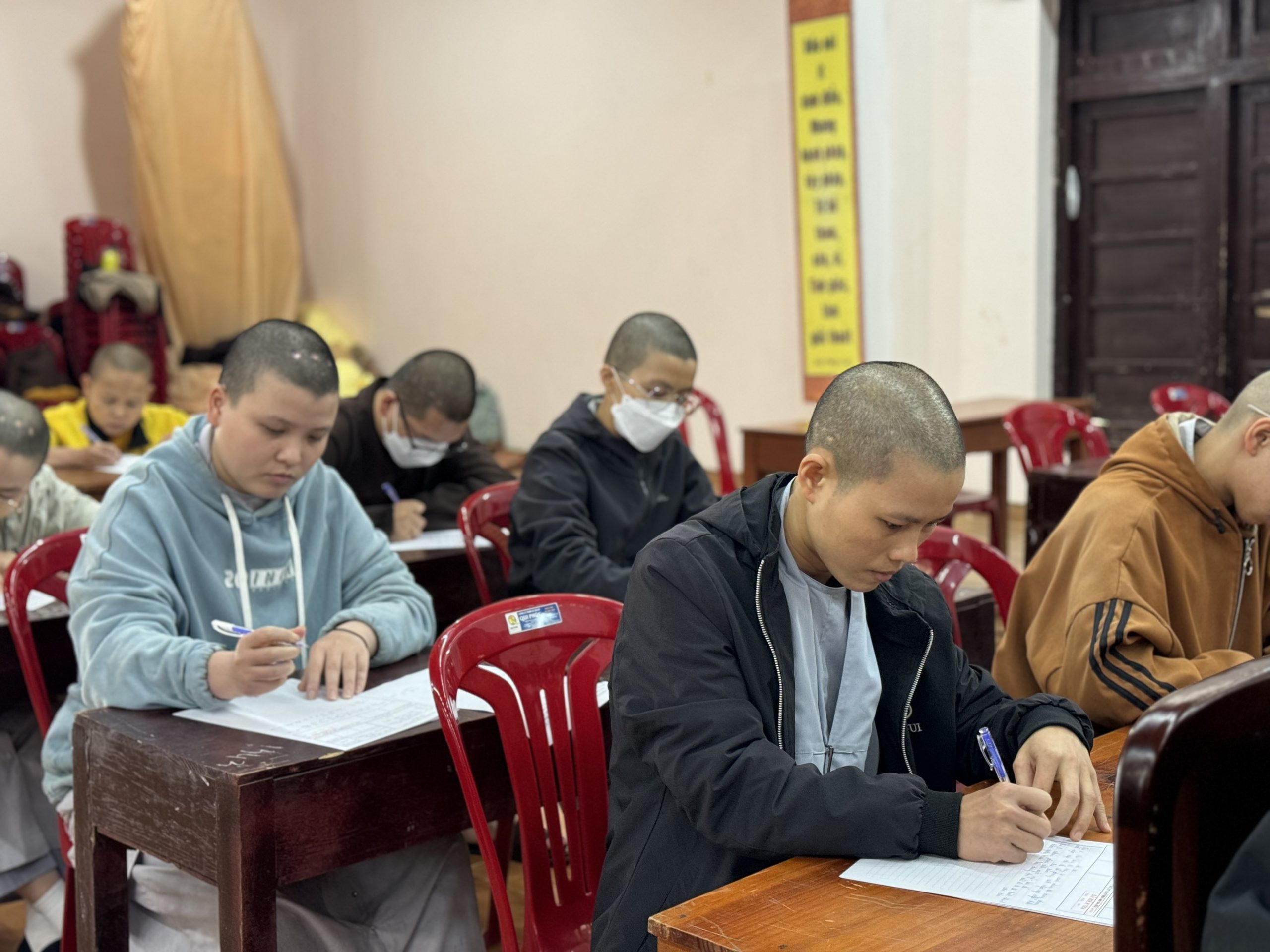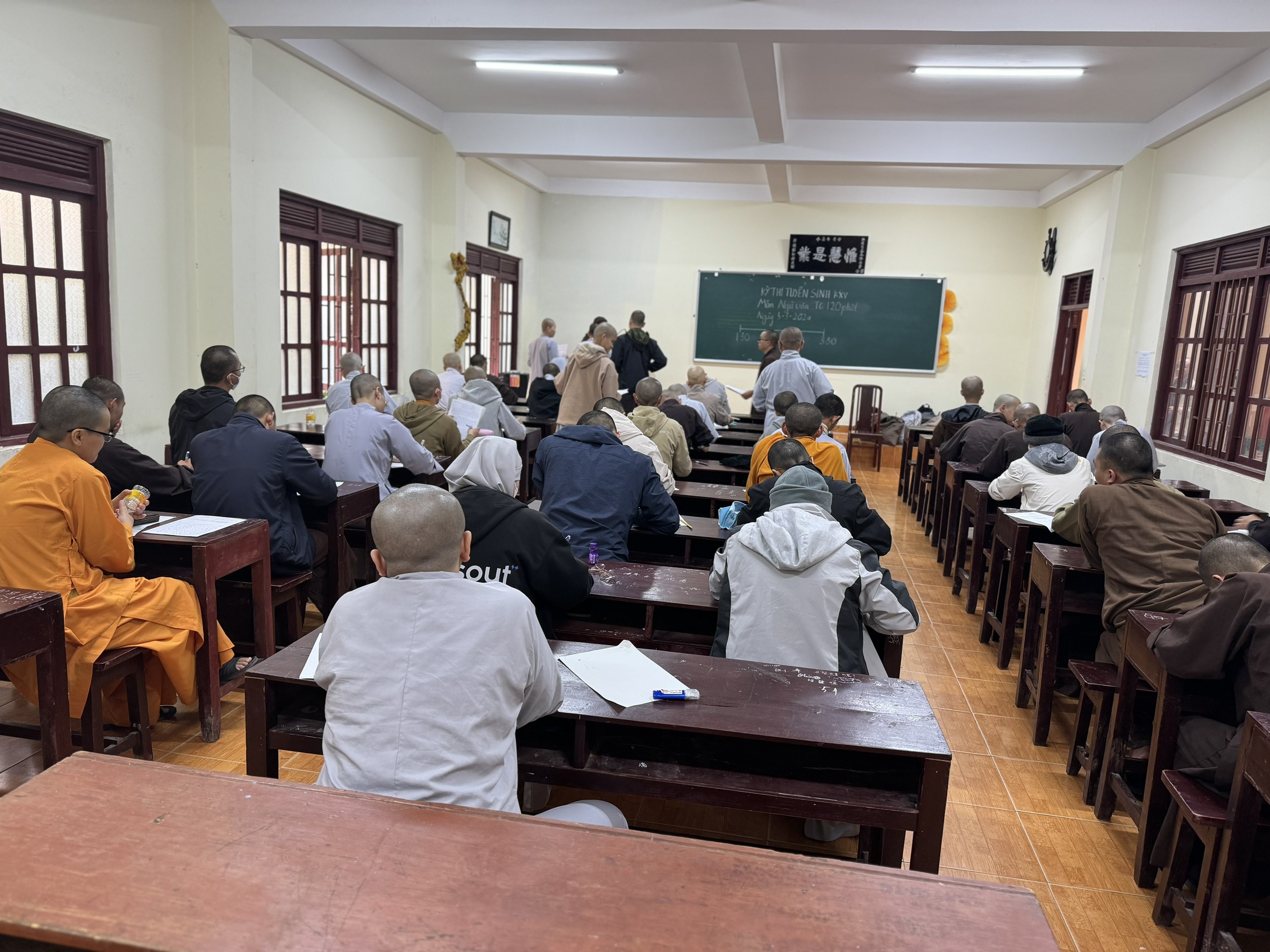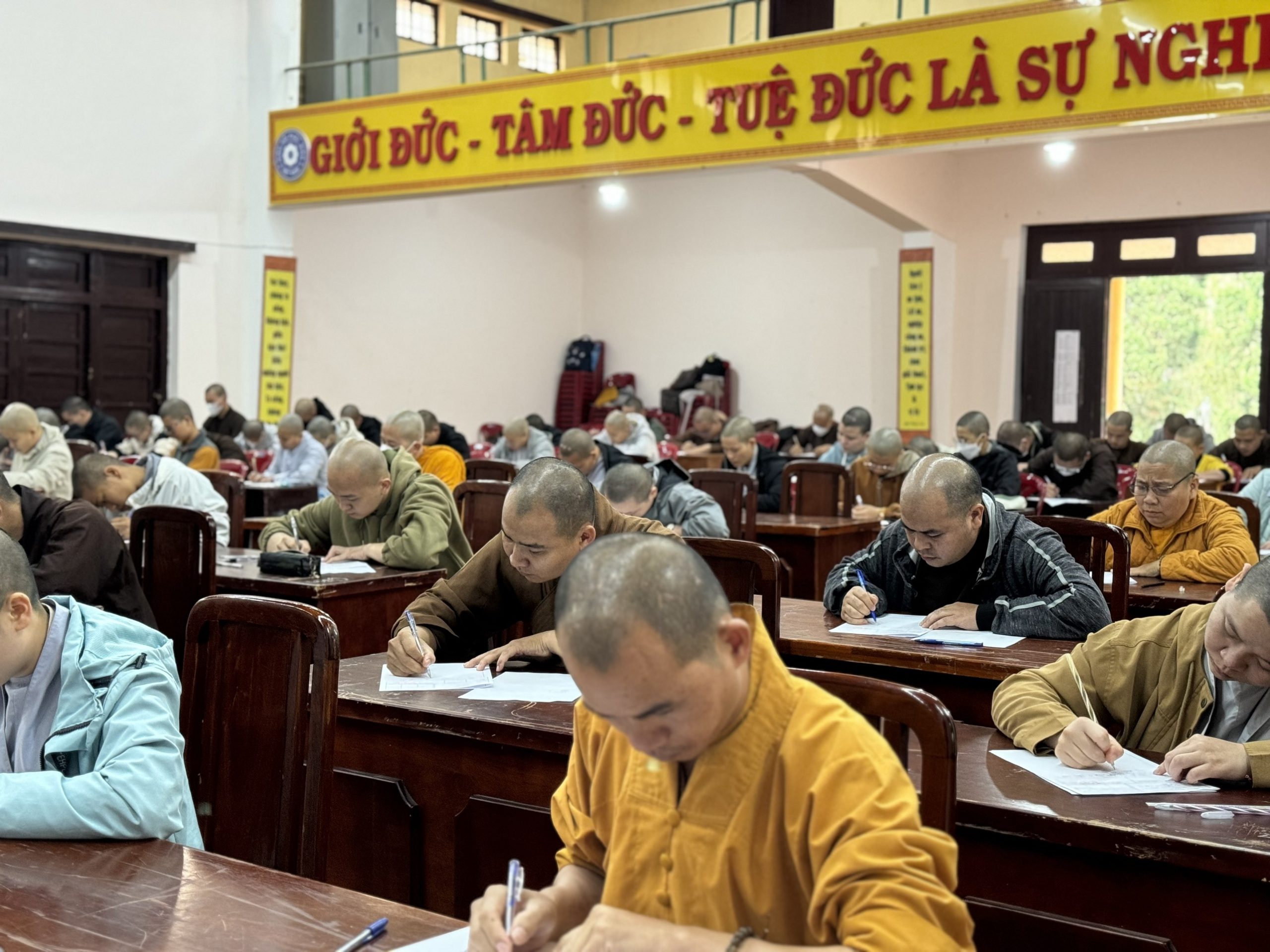 Hòa thượng Hiệu trưởng Thích Viên Thanh đã phát biểu chỉ đạo mọi công việc tổ chức thi diễn ra nghiêm túc và đúng với các quy định trong thi cử. Đây là một công việc thường xuyên được tổ chức sau mỗi học kì nhằm đánh giá và kiểm tra kiến thức, năng lực của Tăng ni sinh trong thời gian tham gia học tại trường. Các Tăng ni sinh phải hoàn thanh những kiến thức cơ bản của hệ trung cấp và cao đẳng do nhà trường giảng dạy.