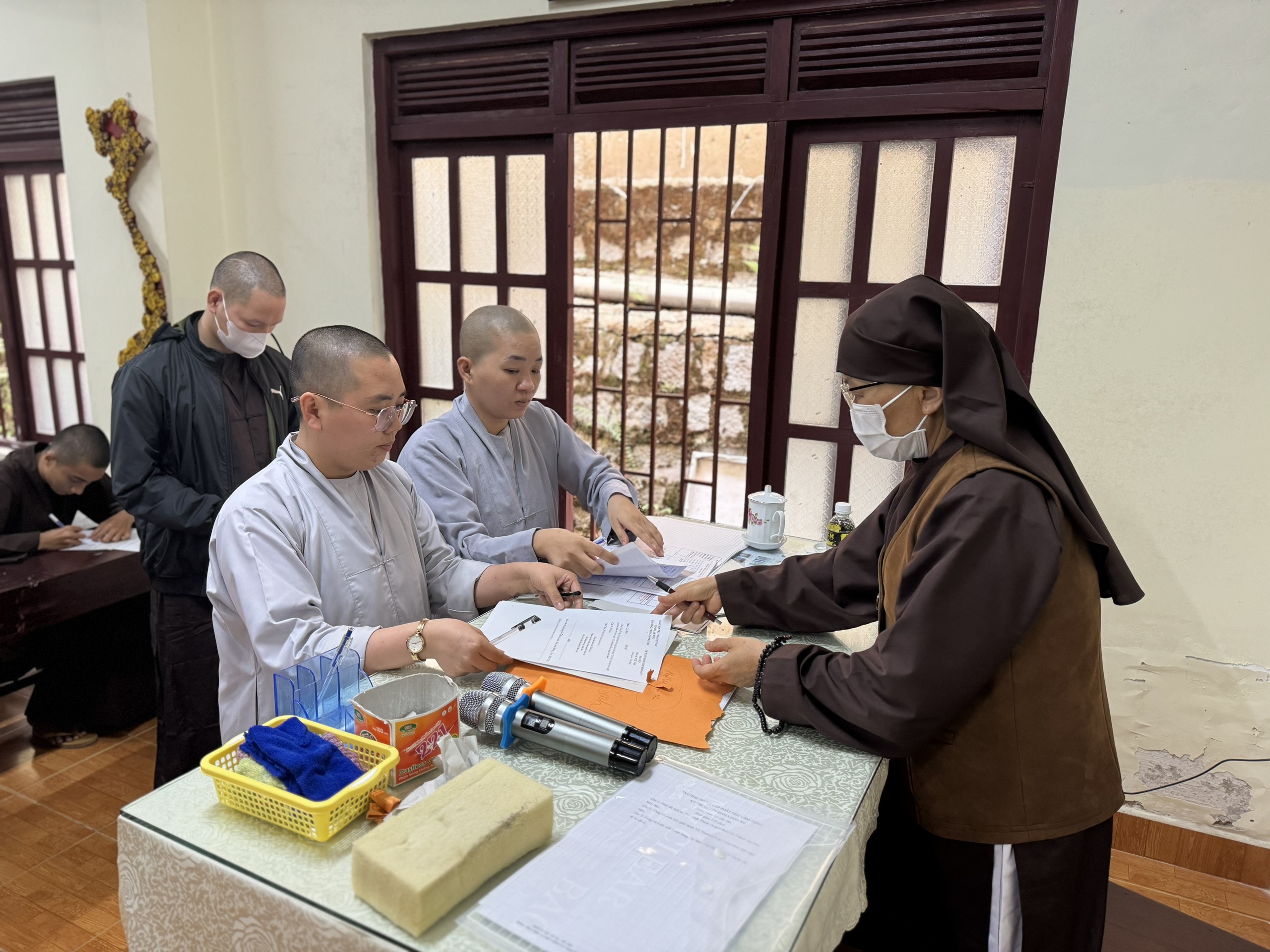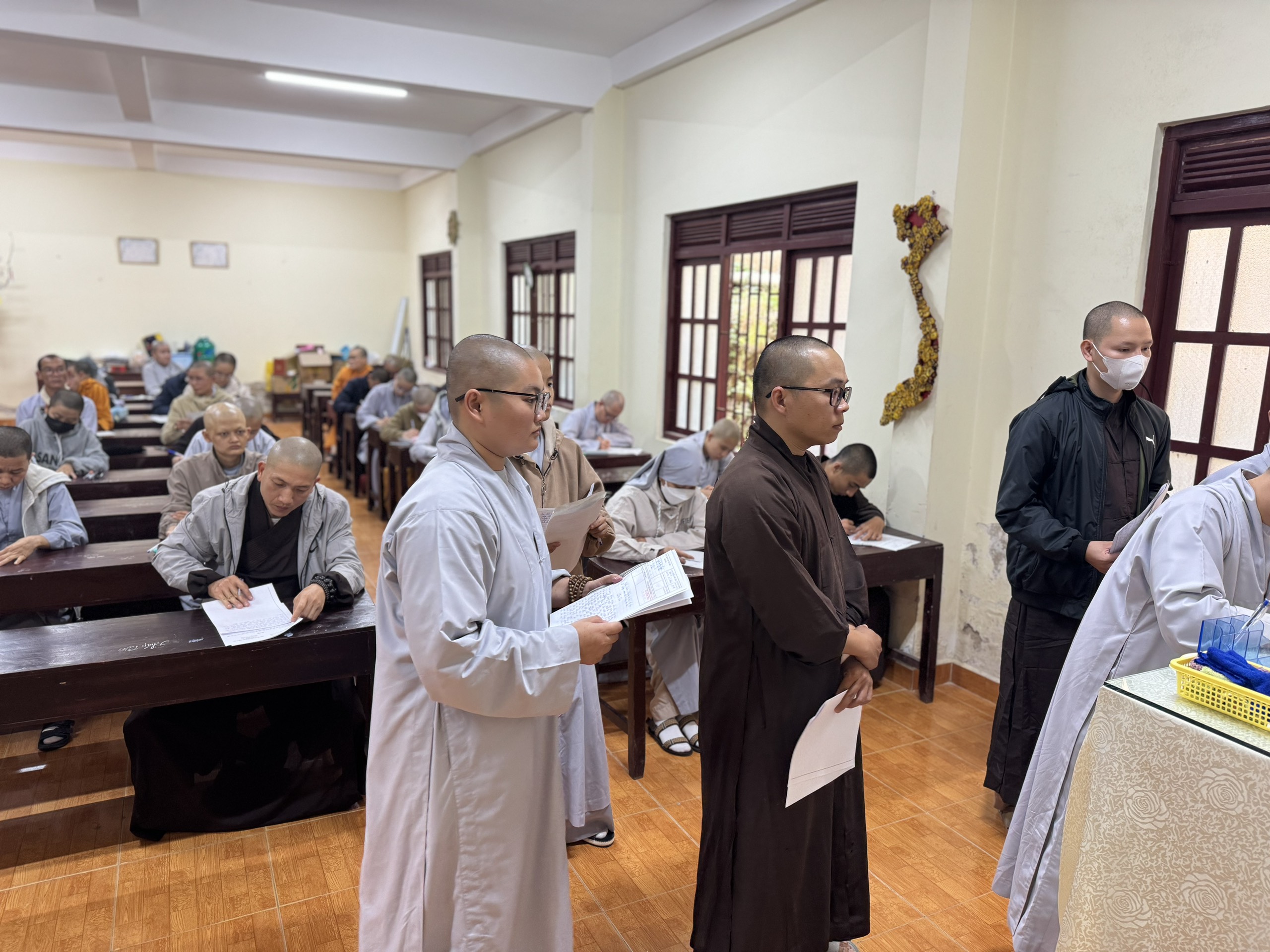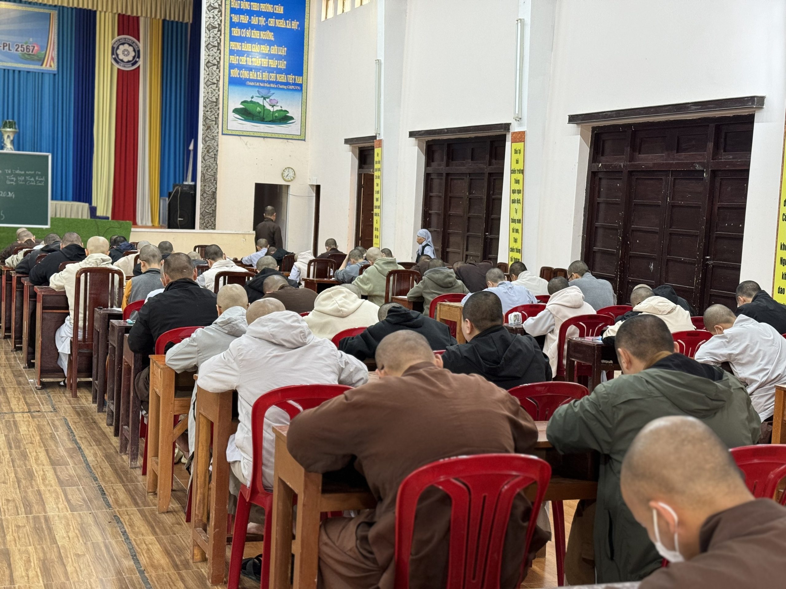 Quang lâm tham dự có HT. Thích Viên Thanh – Phó BTS GHPGVN tỉnh Lâm Đồng, Hiệu trưởng Trường TCPH tỉnh Lâm Đồng, cùng chư tôn đức trong Ban giám hiệu, Ban giáo thọ, Ban giám thị. Trong kì thi này có 90 Tăng Ni sinh tham dự thi học kì II.