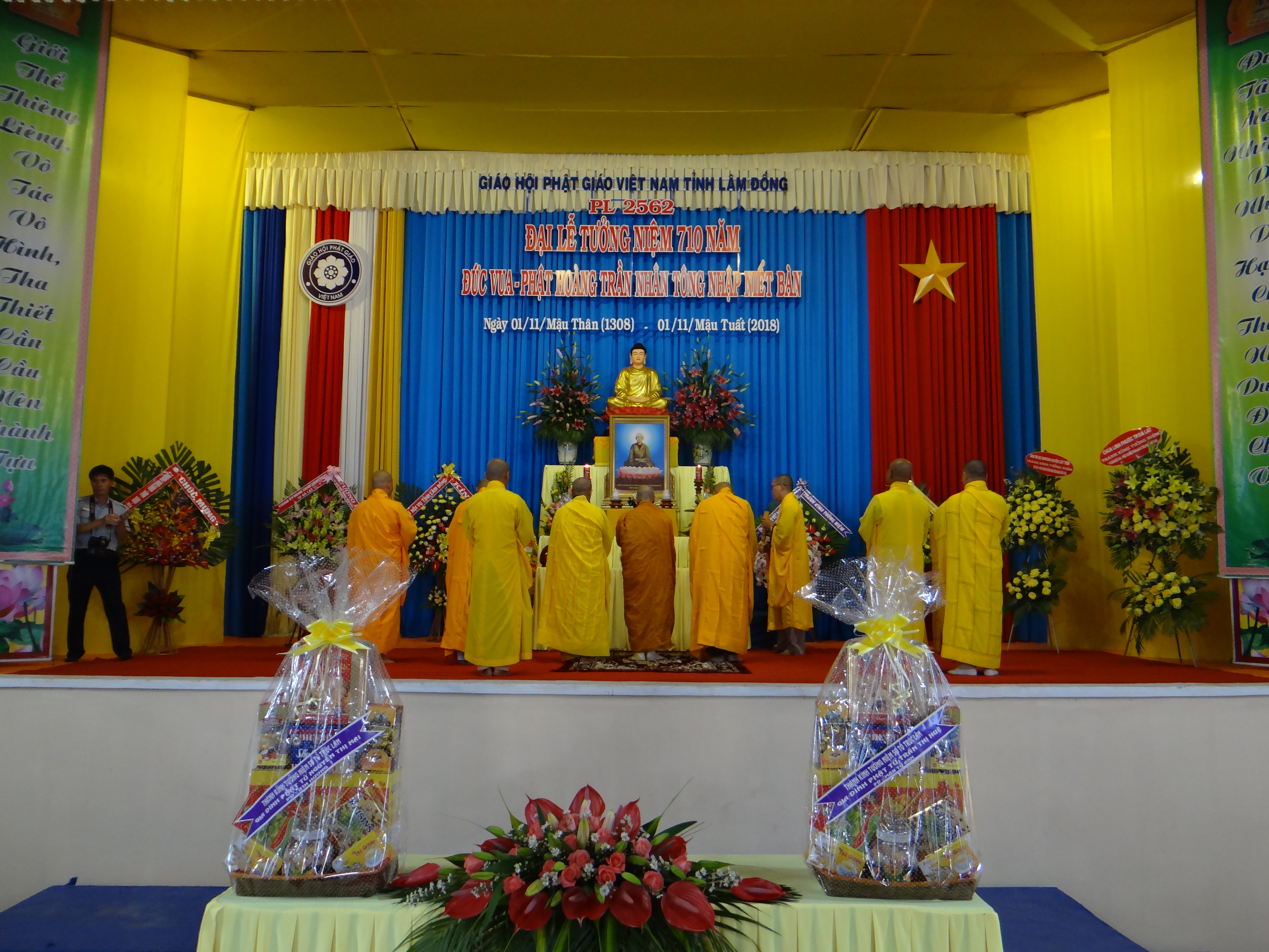Sáng ngày 7/12/2018 ( nhằm ngày 1/11/Mậu Tuất), tại trường Trung cấp Phật học Lâm Đồng, BTS GHPGVN tỉnh đã tổ chức trang nghiêm tổ chức lễ tưởng niệm 710 năm ngày đức Vua Phật Hoàng Trần Nhân Tông nhập Niết bàn. Tham dự lễ có HT. Thích Giác Ngộ, TV. HĐCM TƯ, HT. Thích Chơn Quang, CM BTS GHPGVN Tp ĐàLạt cùng chư tôn đức tăng, ni BTS, trụ trì các tự viện một số huyện thị thành trên địa bàn toàn tỉnh; tăng, ni sinh trường Trung cấp PHLĐ và đông đảo phật tử đến từ các đạo tràng trong Tp.Đà Lạt.