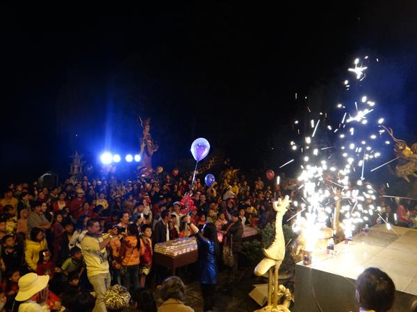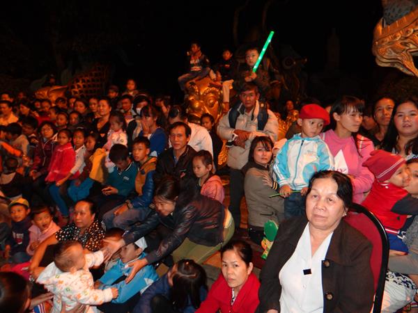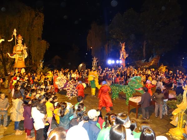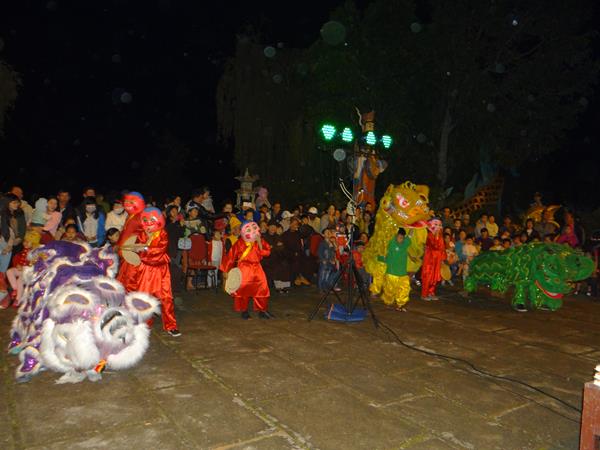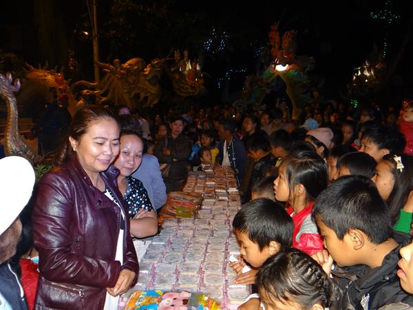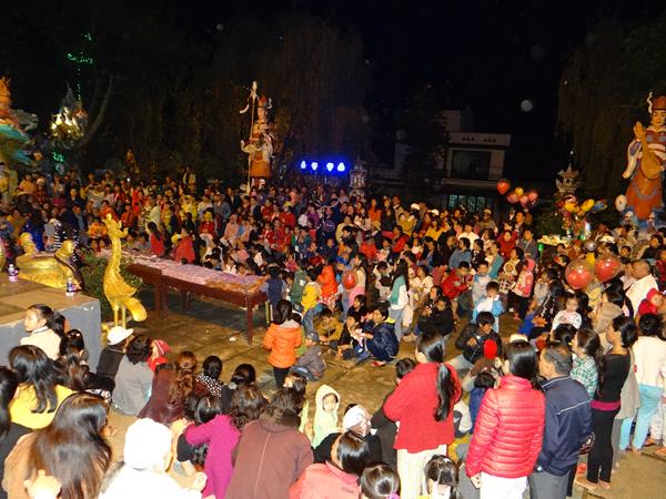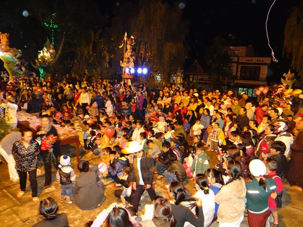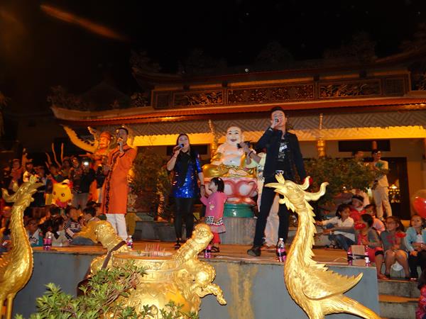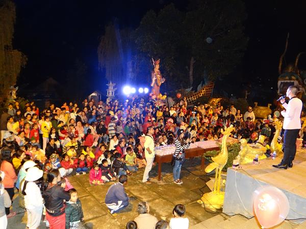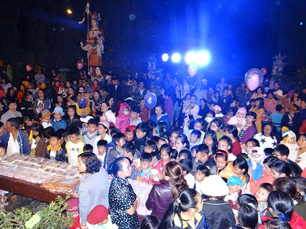 Tại đêm hội, ngoài việc được thưởng thức các tiết mục văn nghệ hấp dẫn, ý nghĩa, vui nhộn do nhóm nghệ sỹ; ca sĩ ‘ Nhân Duyên Tâm’ đến từ tp Hồ Chí Minh biểu diễn, các em thiếu nhi còn được tặng bánh trung thu, lồng đèn với hơn 400 suất quà. chương trình còn có sự tham gia của đội Lân, các em đoàn sinh GĐPT chùa Linh Sơn Tp Đà Lạt và bà Lâm Thụy Nguyên Hồng, giám đốc công ty cổ phần mỹ thuật Gia Long, quận 3 Tp Hồ Chí Minh tài trợ 200 cái lồng đèn cao cấp .Việc tổ chức đêm hội trăng rằm, tạo điều kiện cho thiếu nhi địa phương vui chơi trong ngày hội của mình, đã trở thành việc làm thường niên, đầy ý nghĩa mà chư tăng tổ đình Linh Quang – Đà Lạt và nhóm Nhân Duyên Tâm chung tay, góp sức cùng chính quyền các cấp chăm lo cho thế hệ tương lai của đất nước.