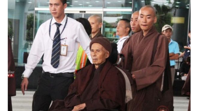 Giờ phút đáng nhớ của tất cả những người con Phật Việt Nam là thời điểm 12 giờ 35 phút ngày 29 tháng 8 năm 2017, khi Thầy Nhất Hạnh, người Thầy lớn không chỉ của Phật tử Việt Nam mà của cả thế giới đã hạ cánh an toàn xuống sân bay quốc tế Đà Nẵng. Tất cả đã vỡ òa trong hạnh phúc và bất ngờ. Thầy đang và sẽ nghỉ ngơi, tĩnh dưỡng tại Đà Nẵng và Huế.